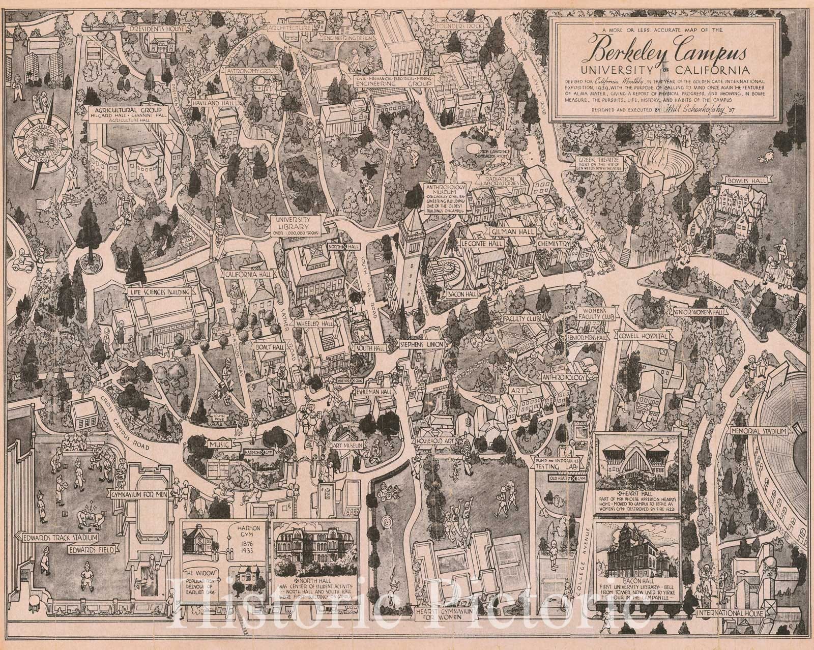 • .Historic Map - Map of the Berkeley Campus University of California, Devised for California Monthly, In the Year of the Golden Gate International Exposition, 1939 - Vintage Wall Art