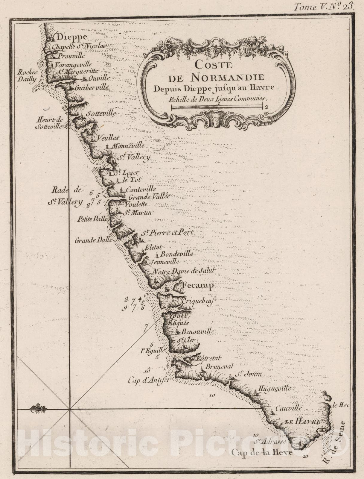 Historic Map : France, Normandie , France 1764 Coste de Normandie depuis Dieppe jusqu'au Havre. , Vintage Wall Art