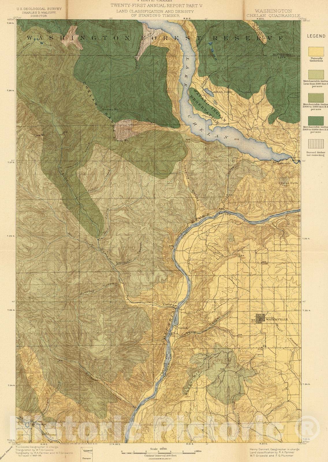 Historic Map : Geologic Atlas - 1900 Plate CXXXIII. Chelan Quadrangle, Washington, Land Classification and Density of Standing Timber. - Vintage Wall Art