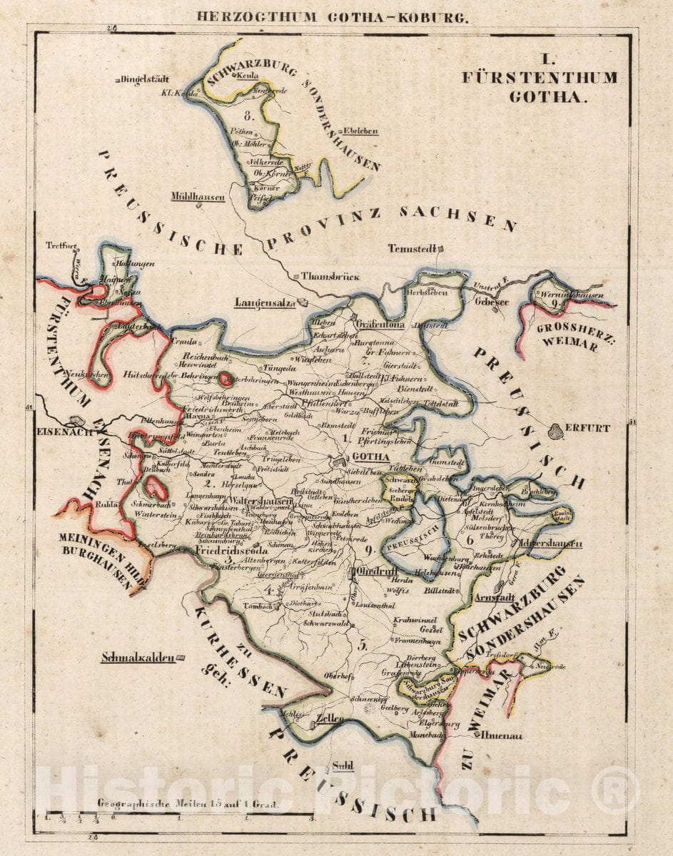 Herzogthum Gotha - Koburg. (to accompany) Atlas von Europa nebst den Kolonien ... bearbeitet von W. E. A. v. Schlieben ... Leipzig bei Georg Joachim Goschen 1825. | Atlas von Europa nebst den Kolonien : fur Geschaftsmanner, Zeitungsleser und Besitzer des Conversations-Lexicons in einer Folge von Charten und einem alphabetisch eingerichteten Texte : bearbeitet von W. E. A. v. Schlieben ... Leipzig bei Georg Joachim Goschen 1825. O. Hermann, Lith. | Publisher:Georg Joachim Goschen