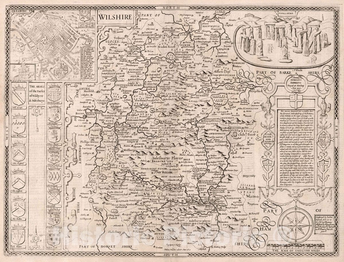• .Historic Map : Glocestershire. (Insets) Glocester. Bristow, 1676 Atlas - Vintage Wall Art