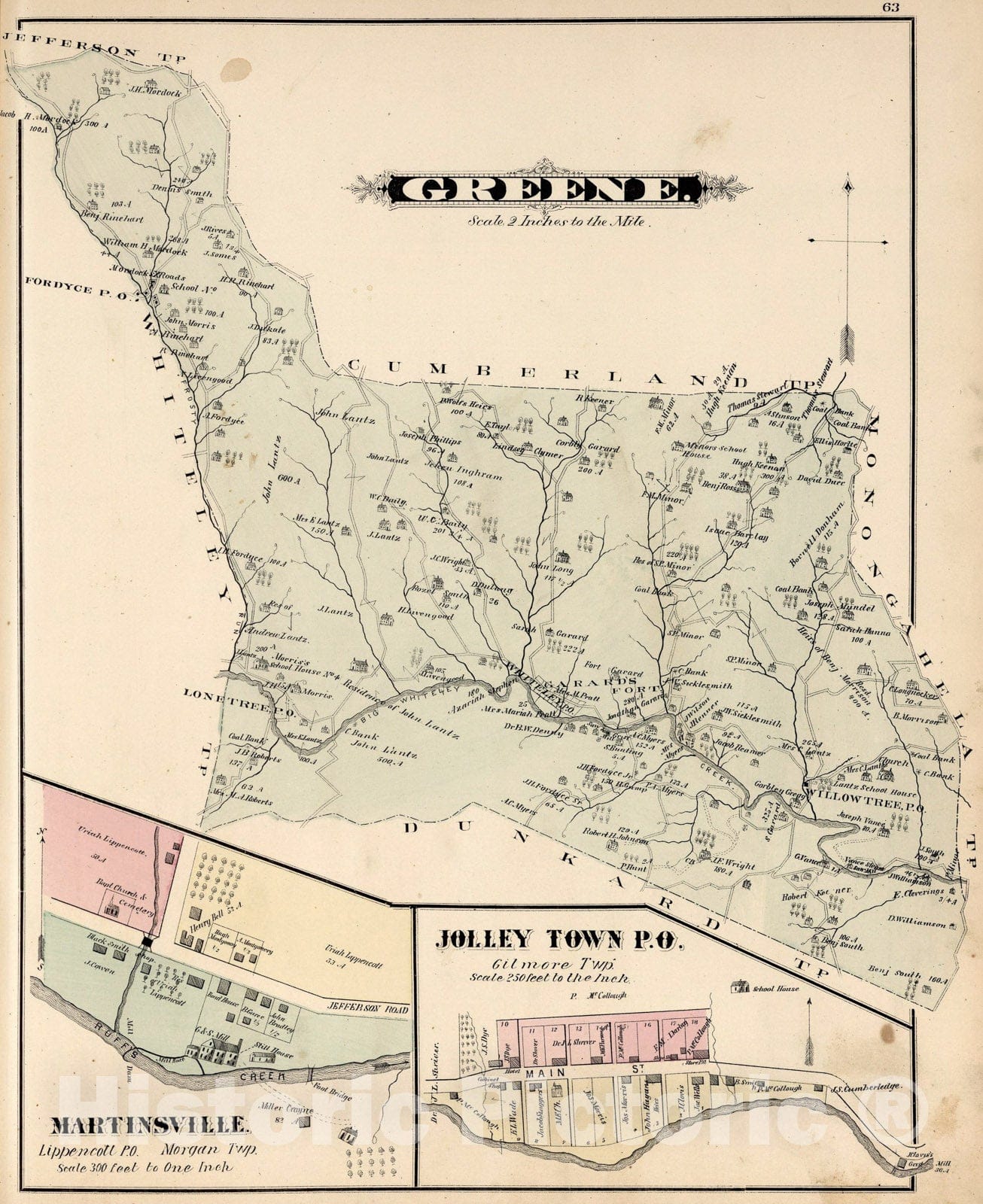 Historic Map : Greene, Greene County, Pennsylvania. Martinsville. Jolley Town., 1876, Vintage Wall Art