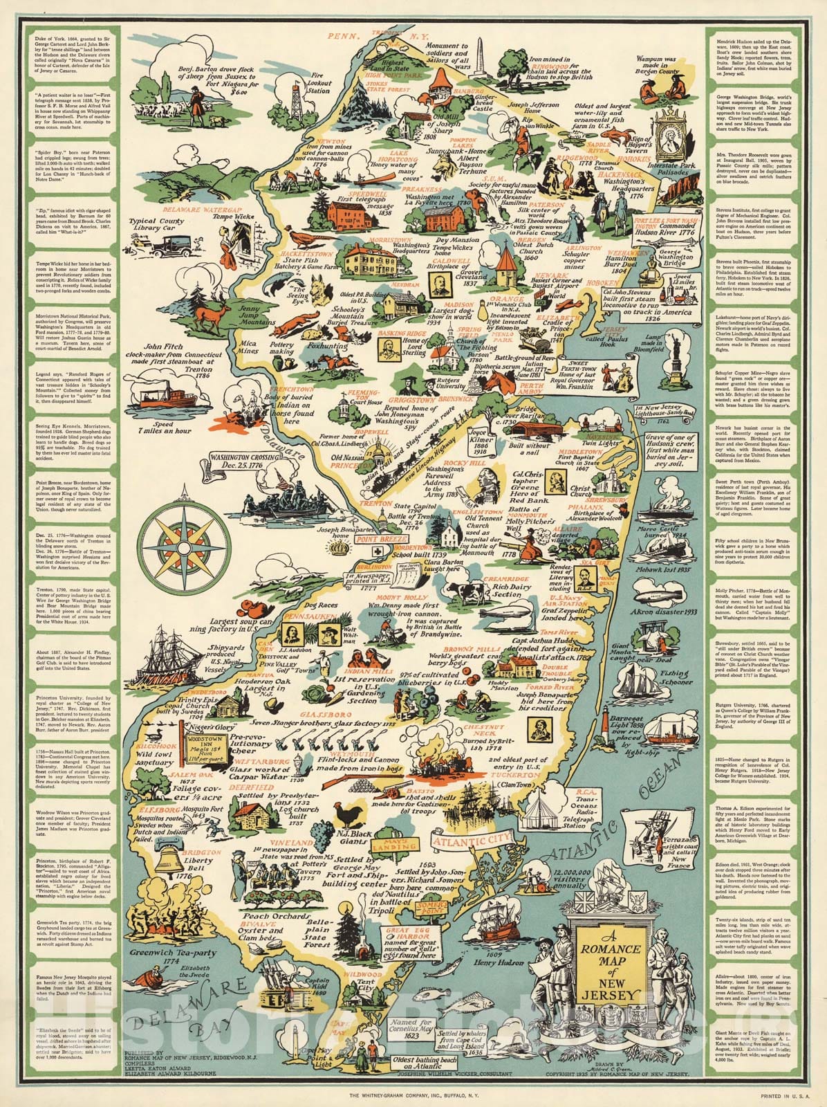 Historic Map - A romance map of New Jersey. Drawn by Mildred C. Green, 1935 - Vintage Wall Art