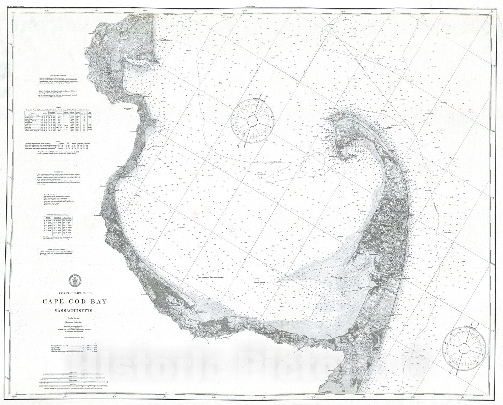 Historic Map : U.S. Coast Survey Nautical Chart or Map of Cape Cod, Massachusetts, 1906, Vintage Wall Art