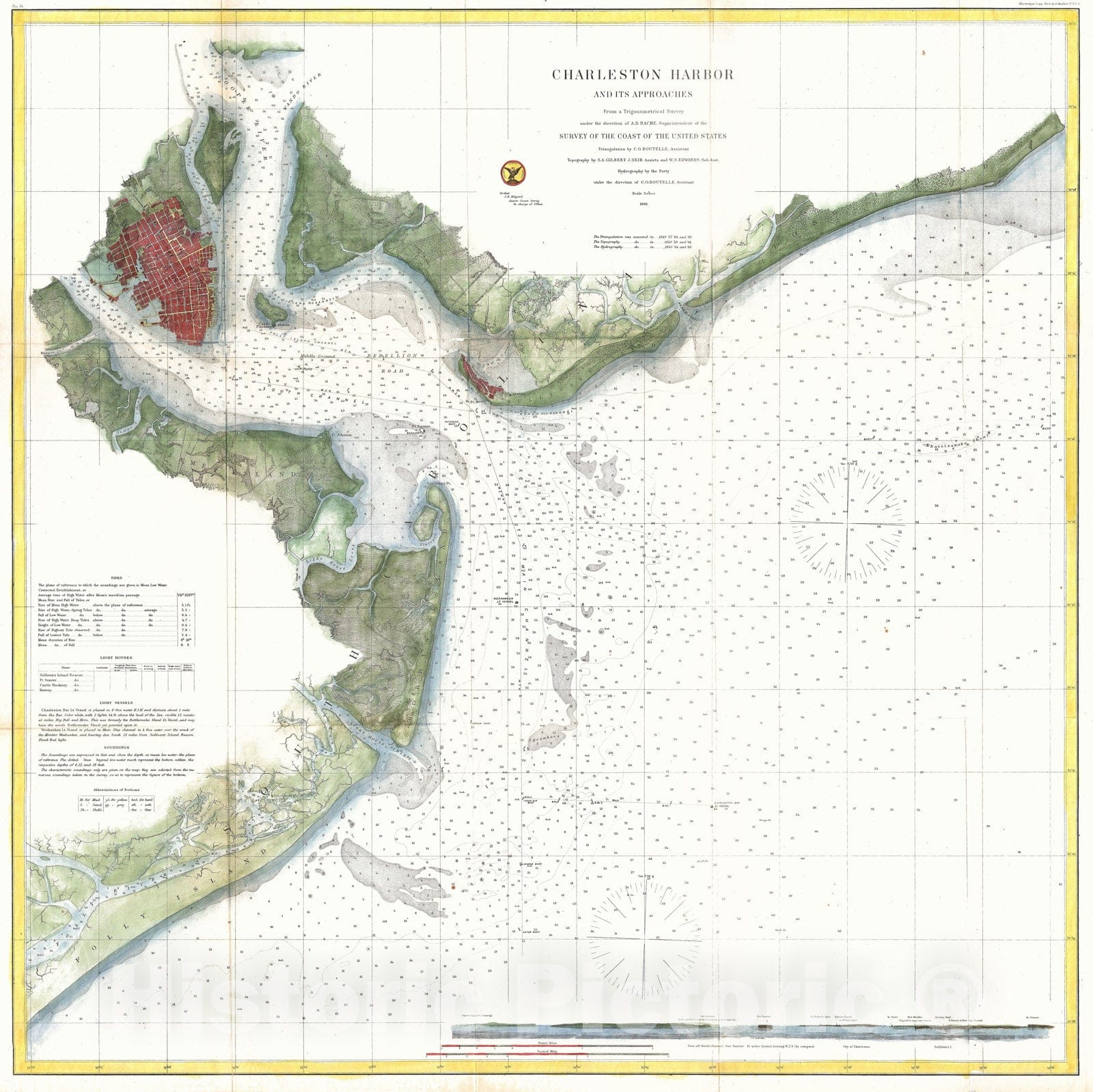 Historic Map : U.S. Coast Survey Nautical Chart of Charleston Harbor, South Carolina, 1866, Vintage Wall Art