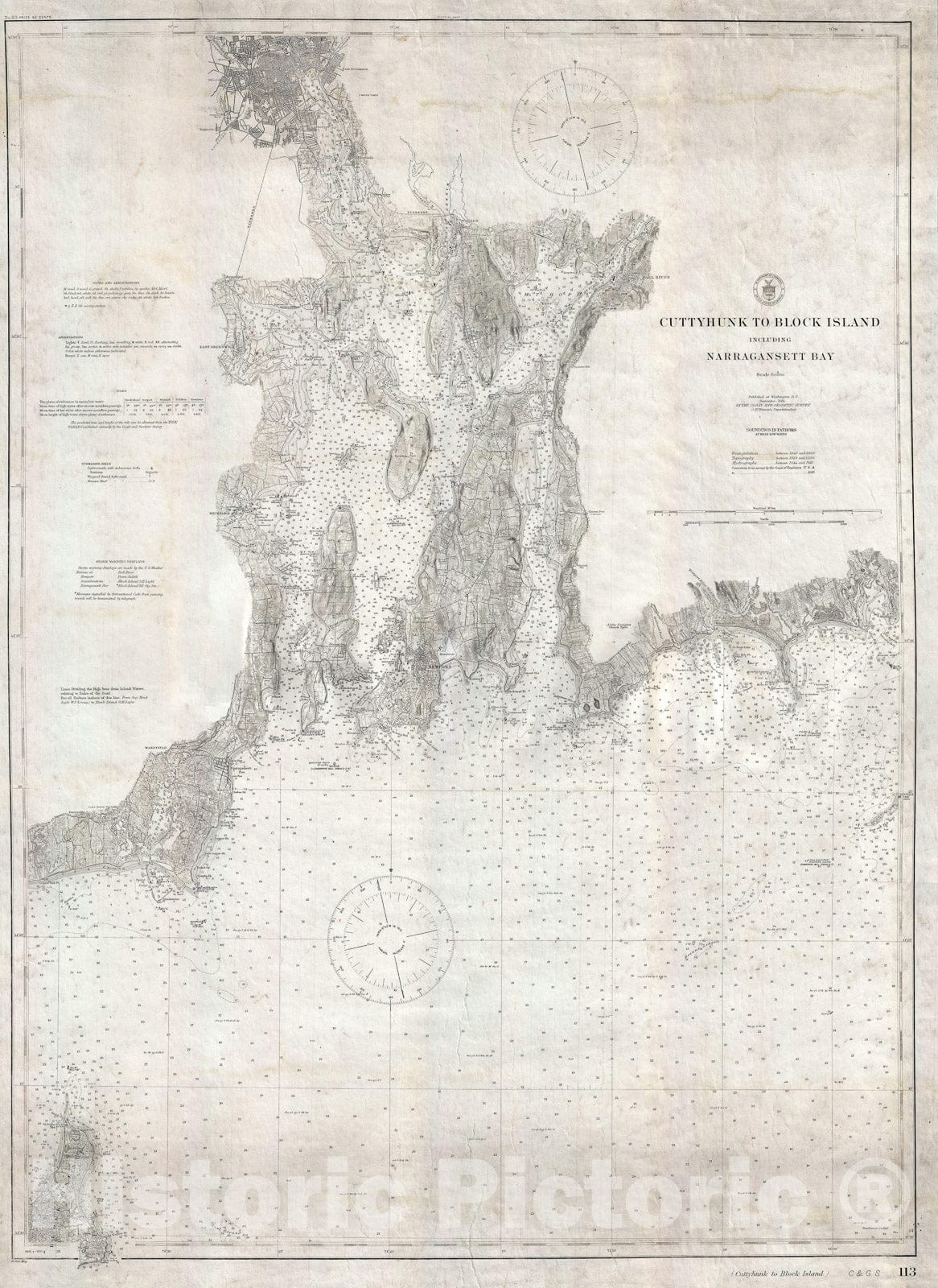 U.S. Coast Survey Nautical Map of Naragansett Bay, Rhode Island, 1915