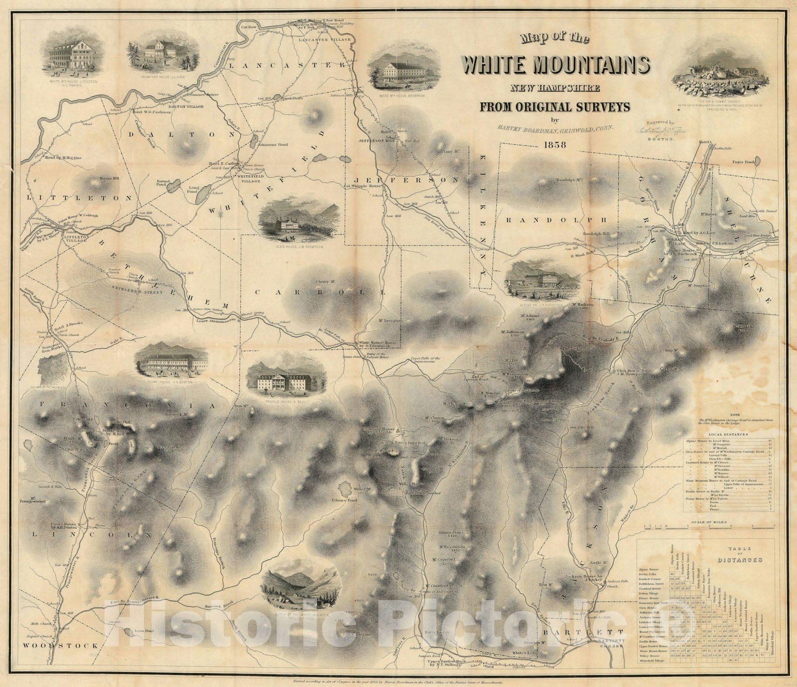 • .Historic Map : The White Mountains in New Hampshire, Boardman, 1859, Vintage Wall Art
