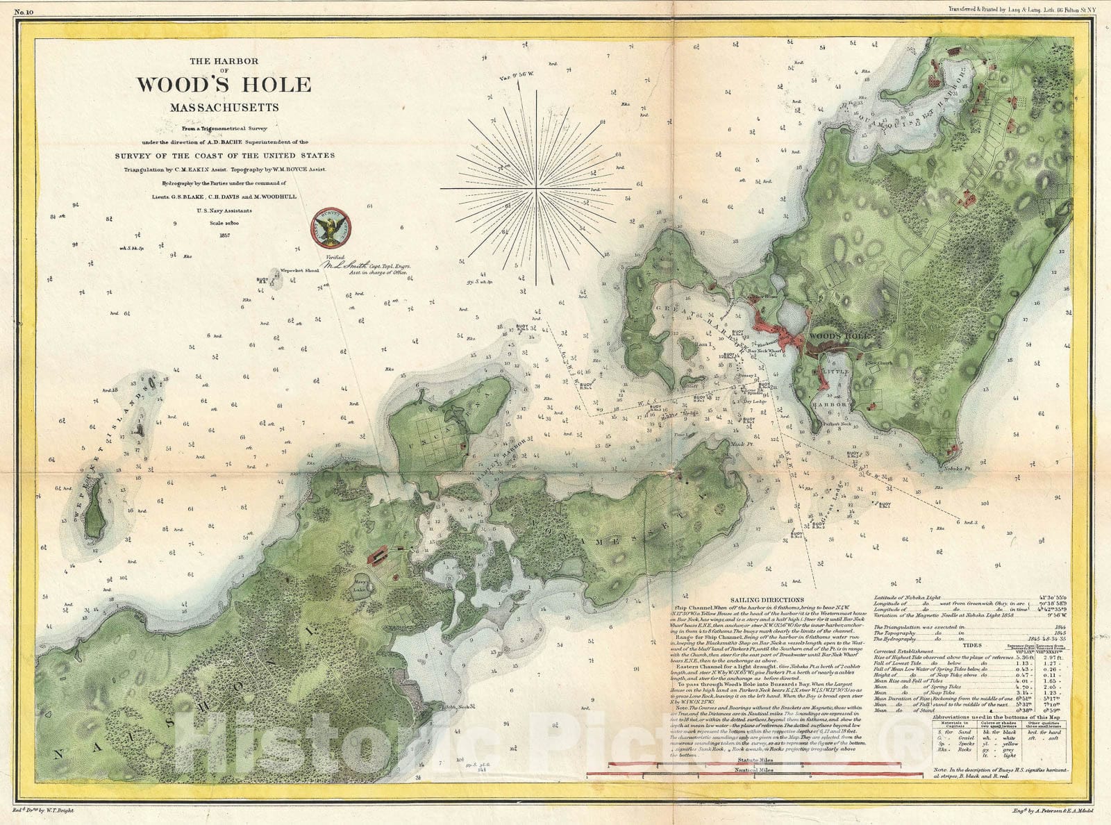 Historic Map : Woods Hole, Massachusetts, U.S. Coast Survey, 1857, Vintage Wall Art