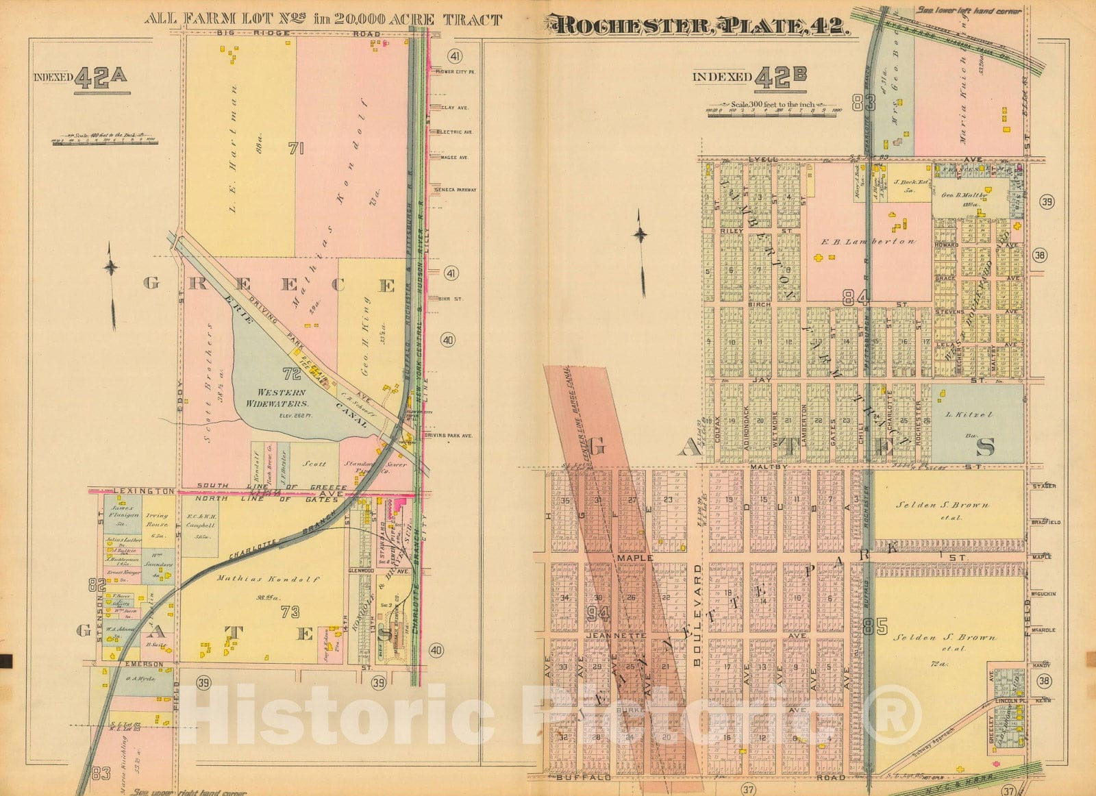 Historic Map : Atlas City of Rochester New York, Rochester 1910 Plate 042 , Vintage Wall Art