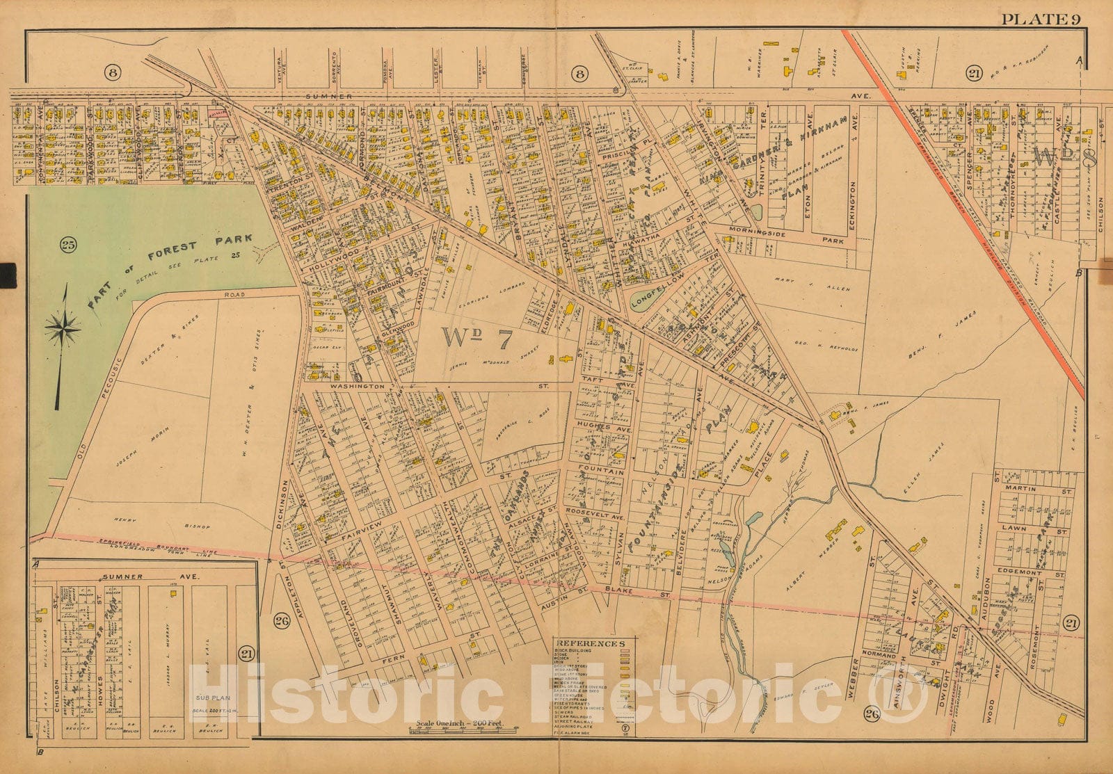 Historic Map : Atlas City of Springfield and The Town of Longmeadow 1910 Plate 009 , Vintage Wall Art