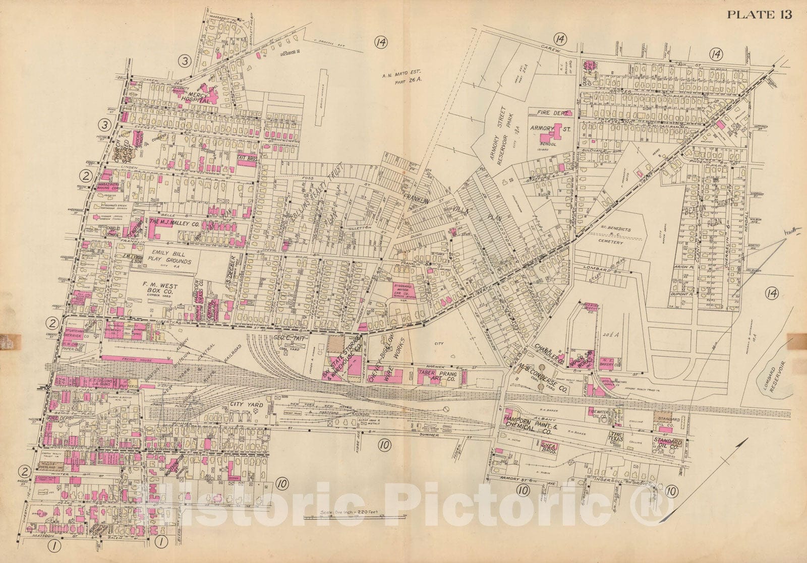 • .Historic Map : Atlas City of Springfield and the Town of Longmeadow 1920 Plate 013 , Vintage Wall Art