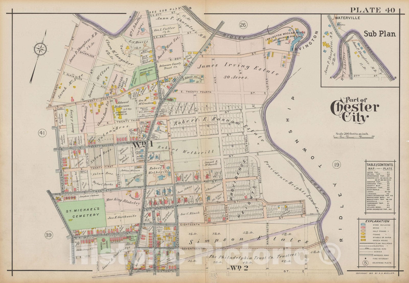 Historic Map : Atlas of Delaware County, West of Ridley Creek, Vol. Two, Chester City 1913 Plate 040 , Vintage Wall Art