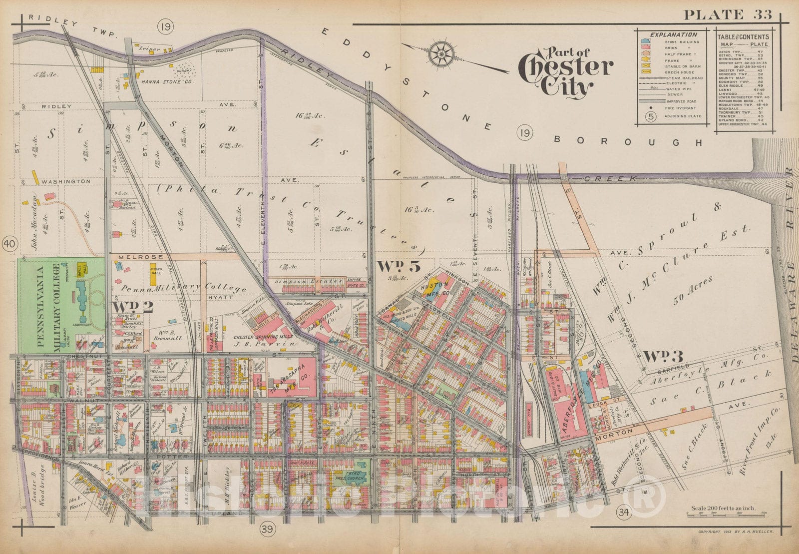 Historic Map : Atlas of Delaware County, West of Ridley Creek, Vol. Two, Chester City 1913 Plate 033 , Vintage Wall Art