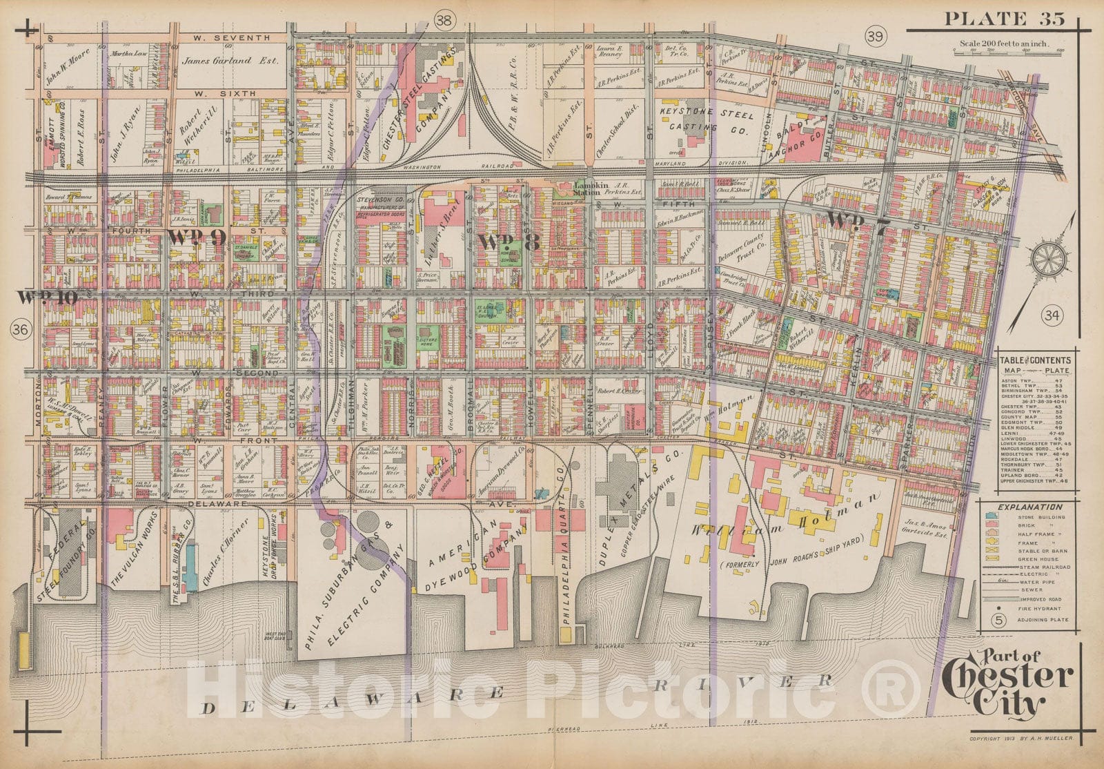 • .Historic Map : Atlas of Delaware County, West of Ridley Creek, Vol. Two, Chester City 1913 Plate 035 , Vintage Wall Art