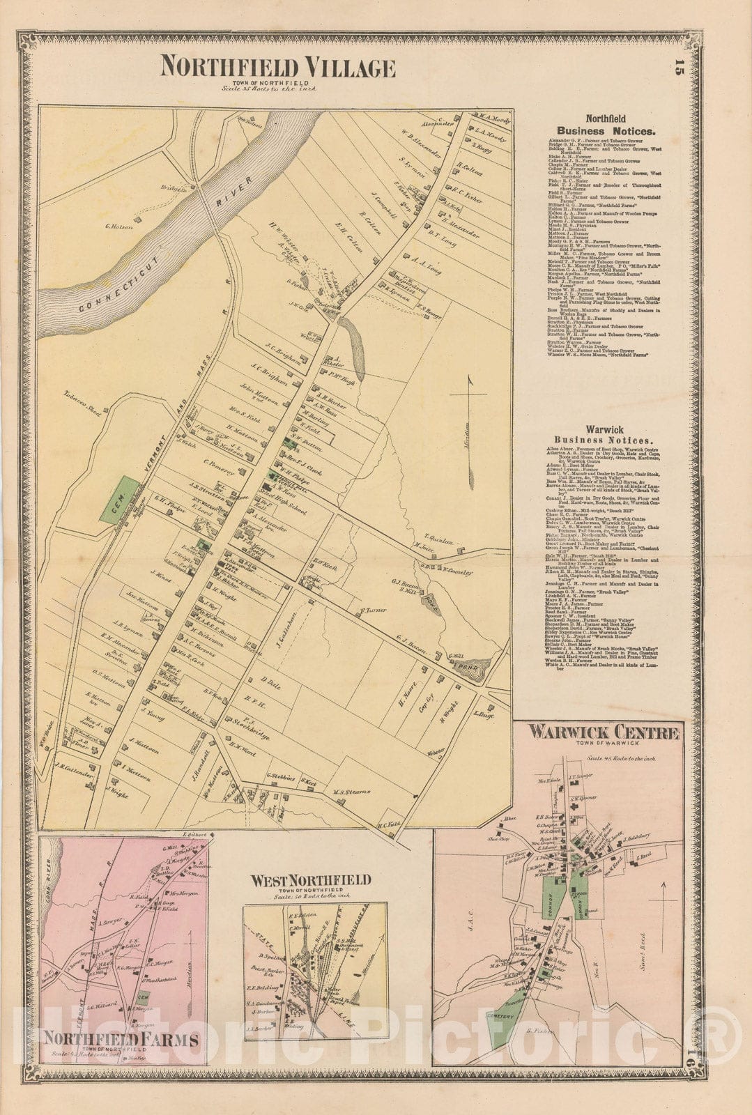 Historic Map : Atlas of Franklin Co. Massachusetts, Northfield & Warwick 1871 , Vintage Wall Art
