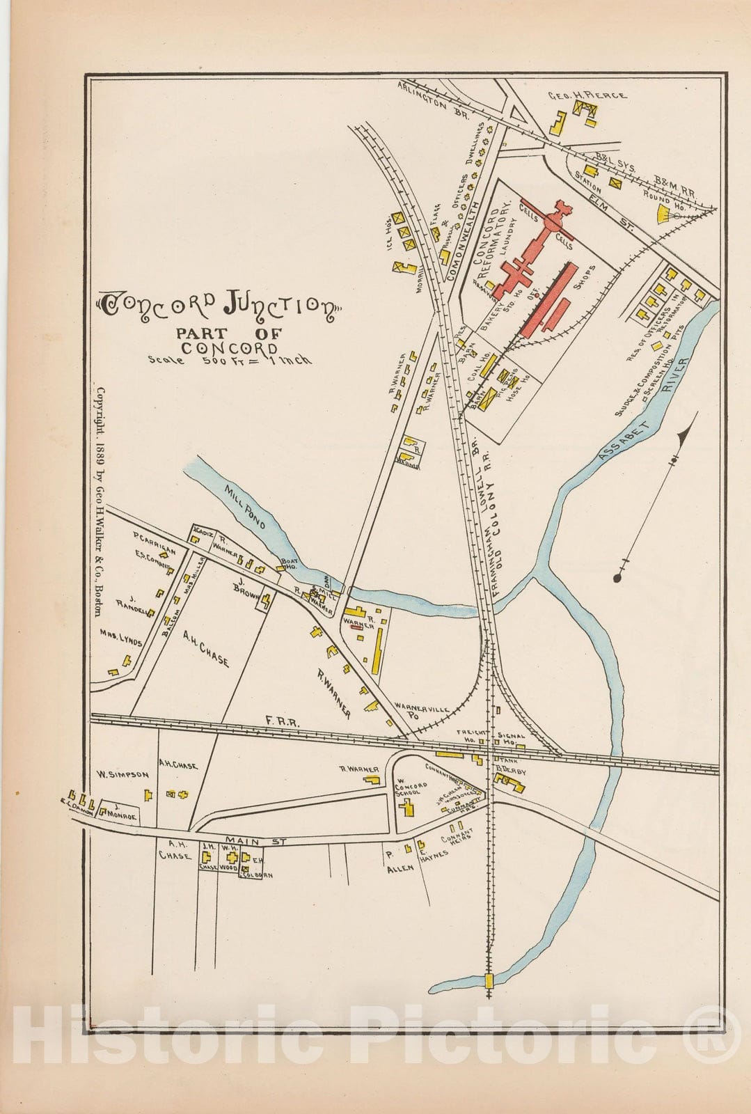 Historic Map : Atlas of Middlesex County, Massachusetts, Concord 1889 , Vintage Wall Art