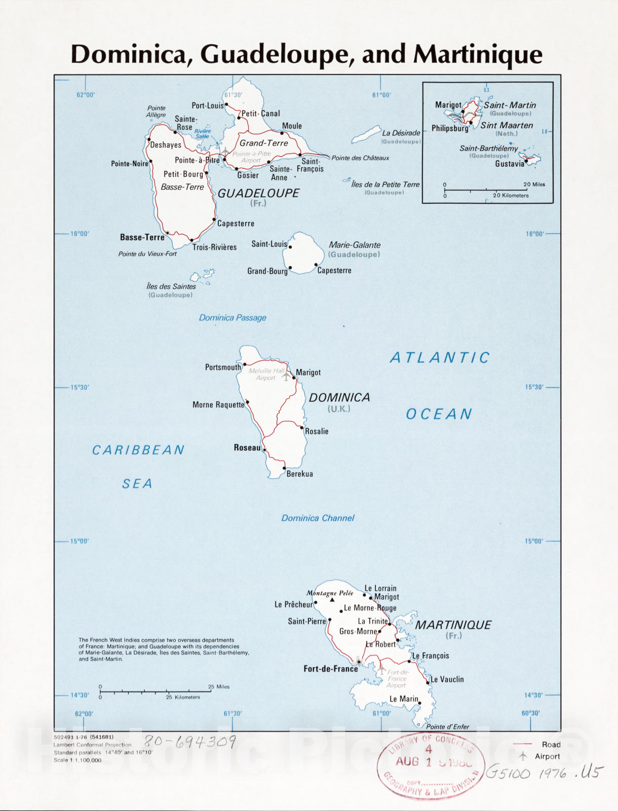 Historic 1972 Map - Dominica, Guadeloupe, and Martinique.