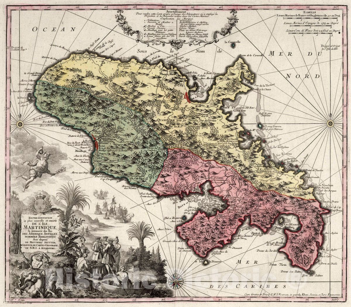 Historic Map : 47. Representation la Plus Nouvelle et exacte d'Ile Martinique, 1735 Atlas - Vintage Wall Art