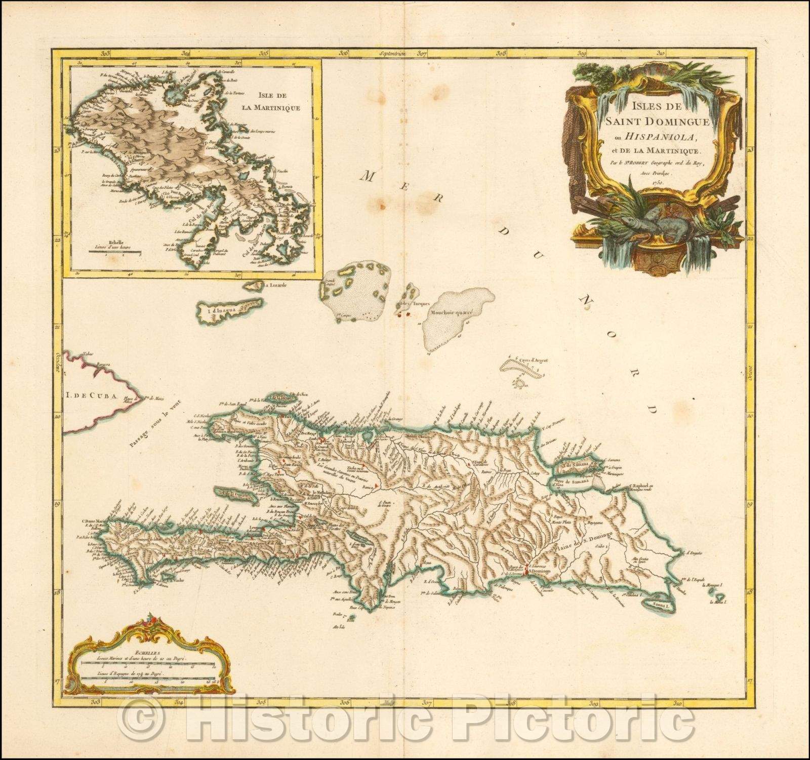 Historic Map - Isles de Saint Domingue ou Hispaniola et de la Martinique, 1750, Gilles Robert de Vaugondy v1