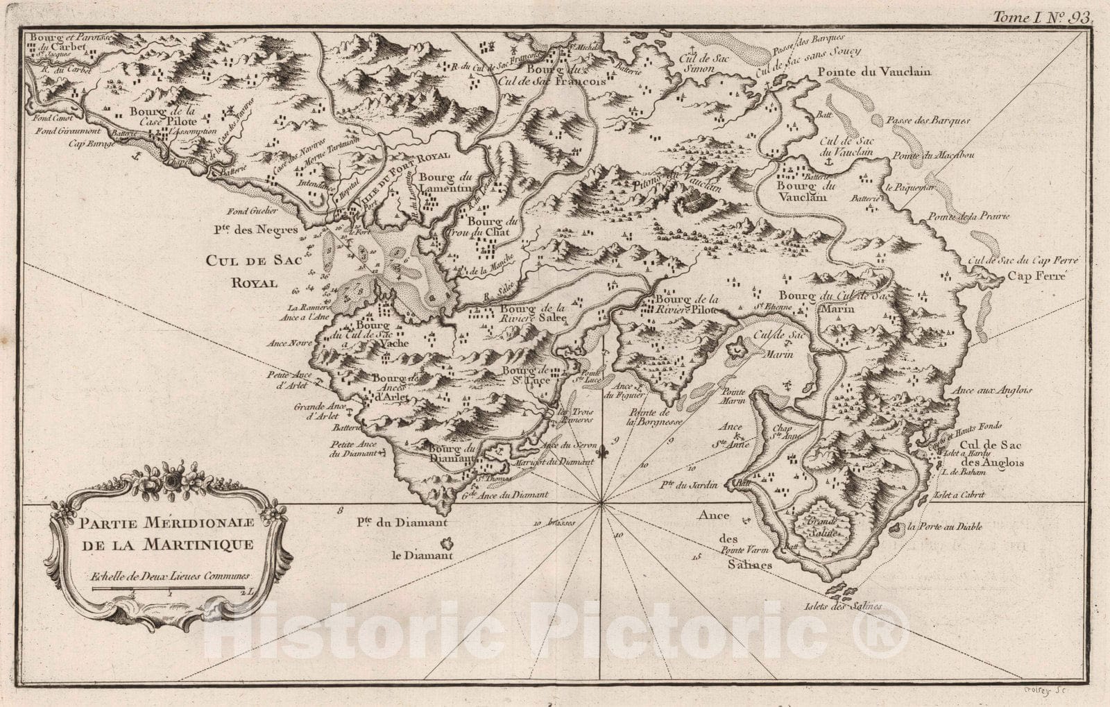 Historic Map : Martinique, , West Indies 1764 Partie meridionale de la Martinique. Croisey sc[ulp.] , Vintage Wall Art