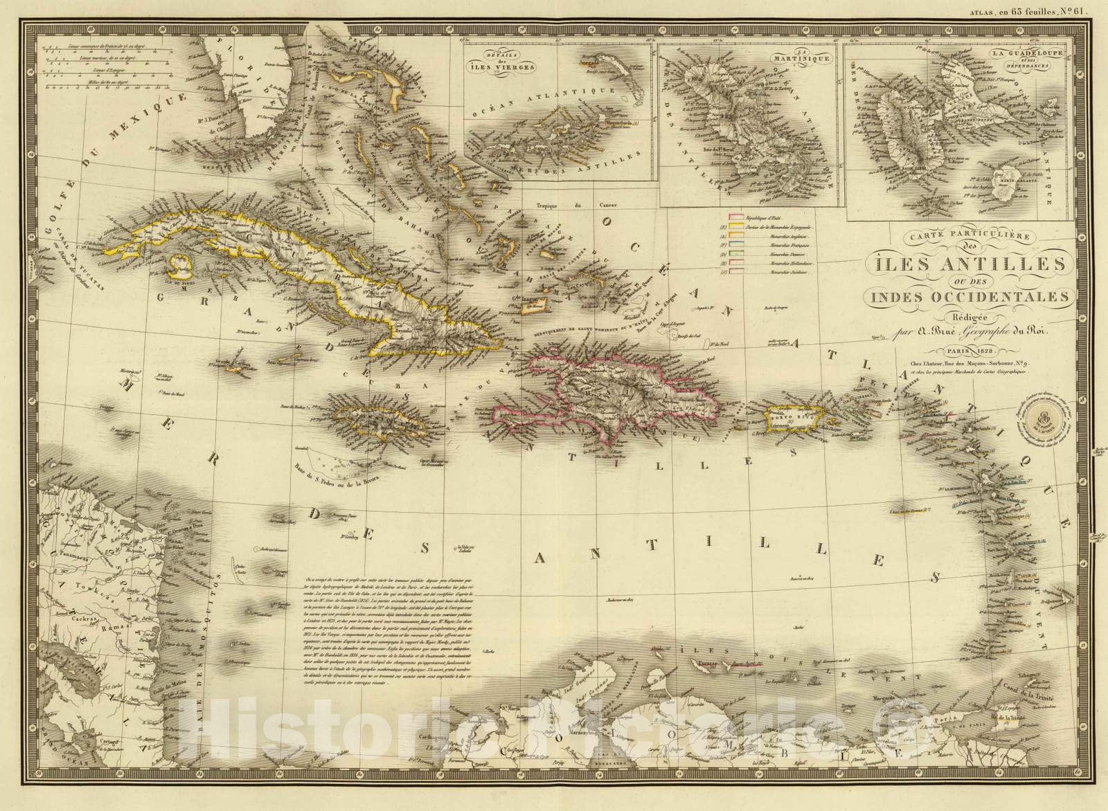 Martinique, West Indies 1828 Iles Antilles ou des Indes Occidentales. , Vintage Wall Art