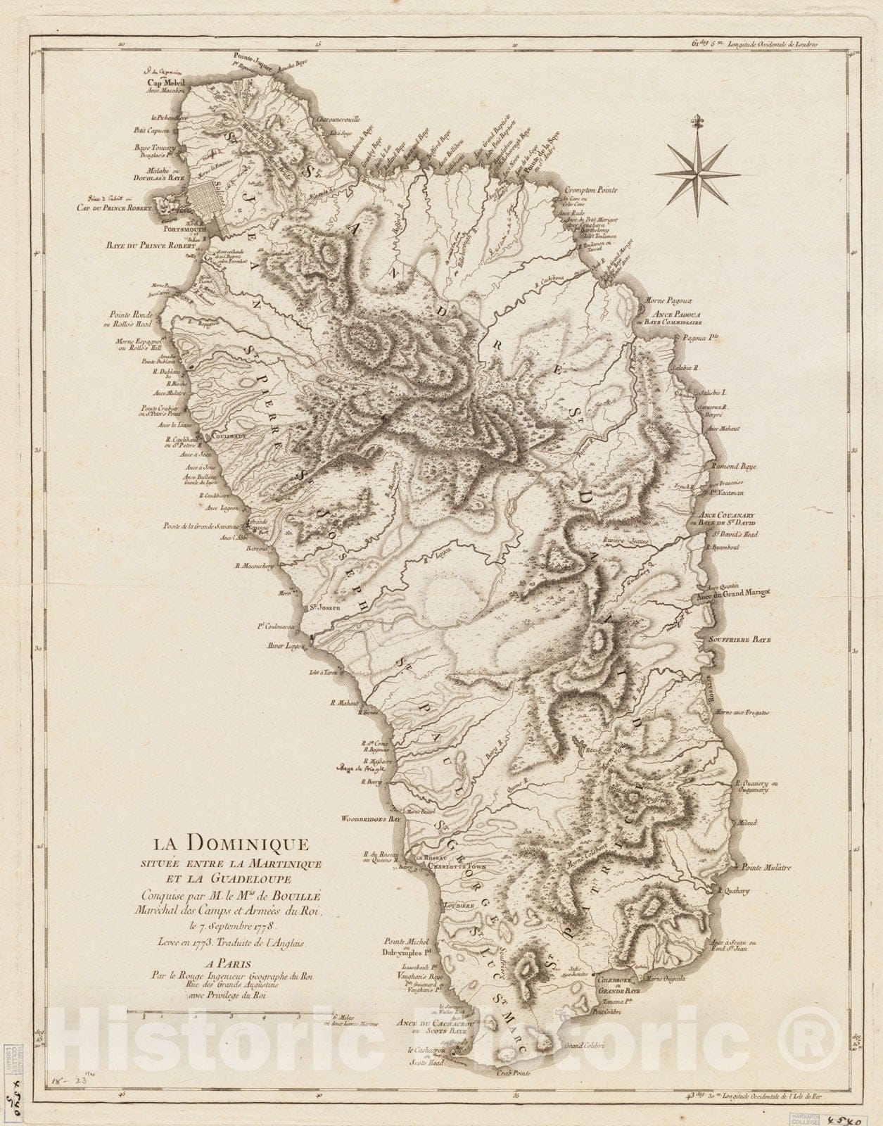 Historical Map, La Dominique situee Entre La Martinique et La Guadeloupe : conquise par M. le Mis. de Bouille Marechal des Camps et armees du Roi, le 7 Septembre 1778, Vintage Wall Art