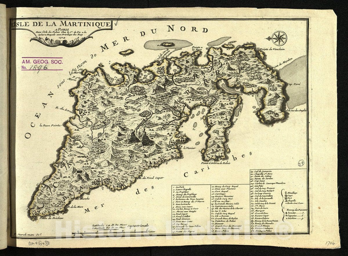 Map : Martinique 1704, L'Isle de la Martinique , Antique Vintage Reproduction