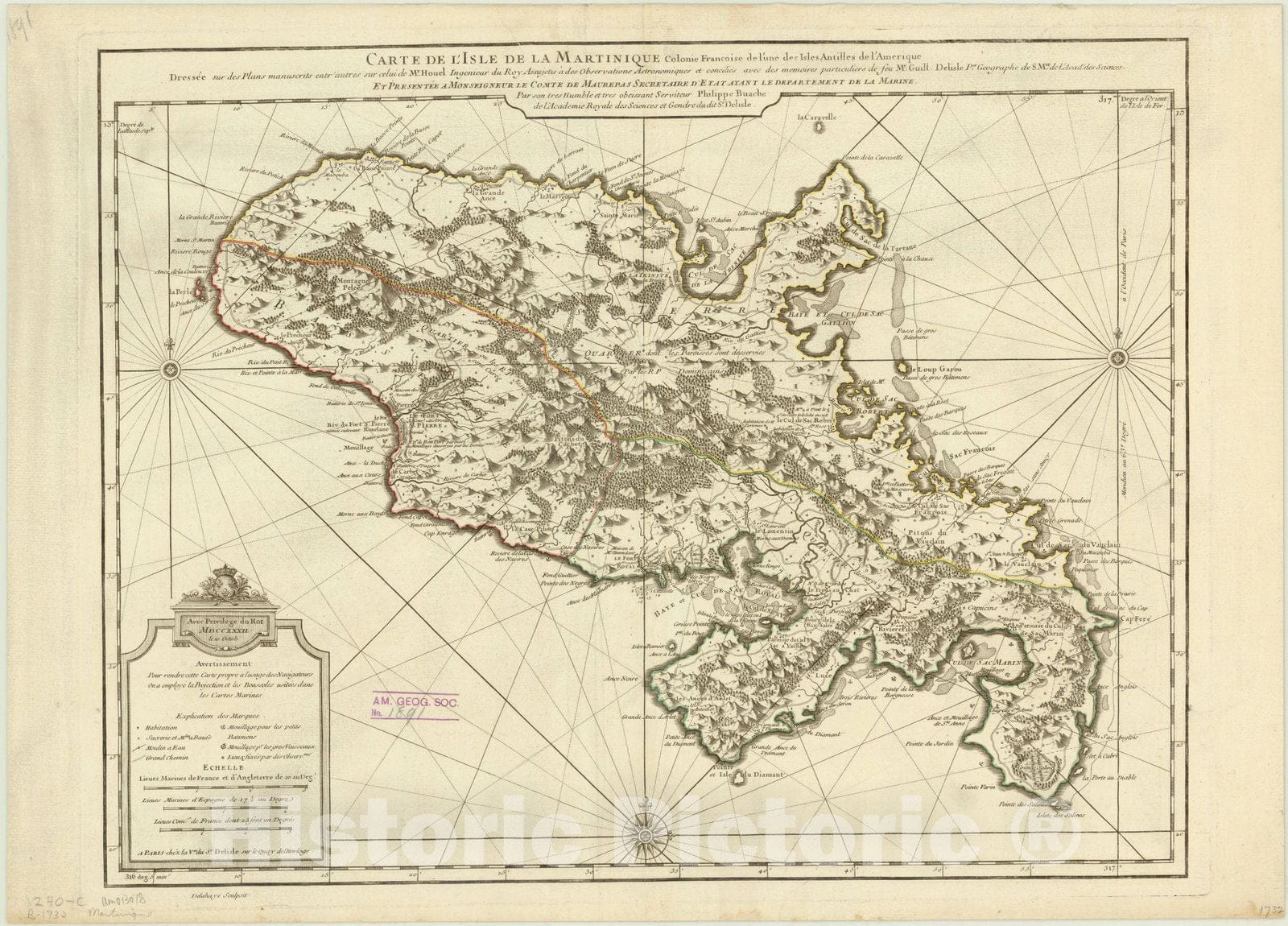 Map : Martinique 1732, Carte de l'isle de la Martinique : colonie franc?oise de l'une des isles Antilles de l'Amerique , Antique Vintage Reproduction