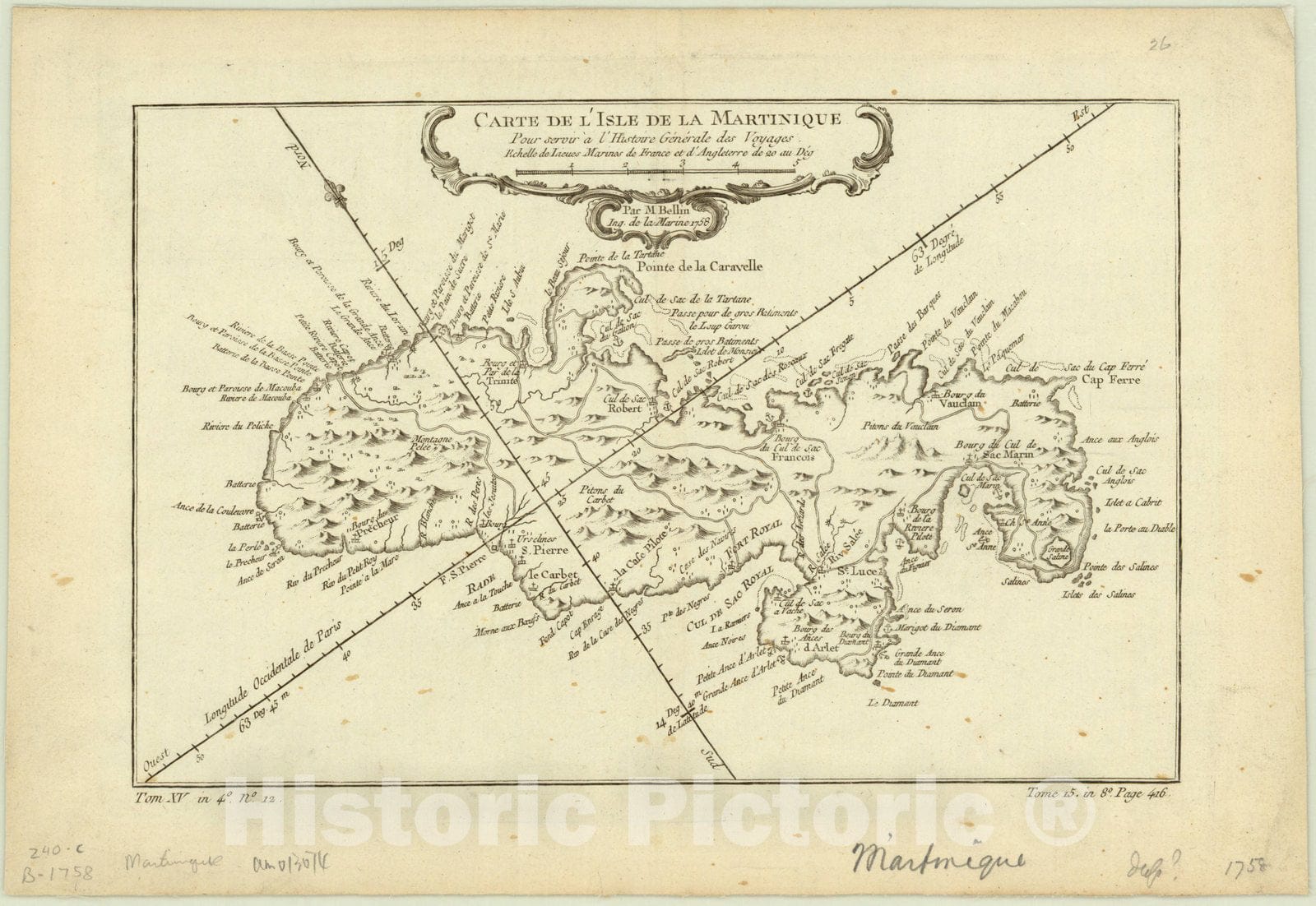 Carte de L'Isle De La Martinique : Pour servir a l'Histoire Generale des Voyages / par M. Bellin Ing. de la Marine 1758