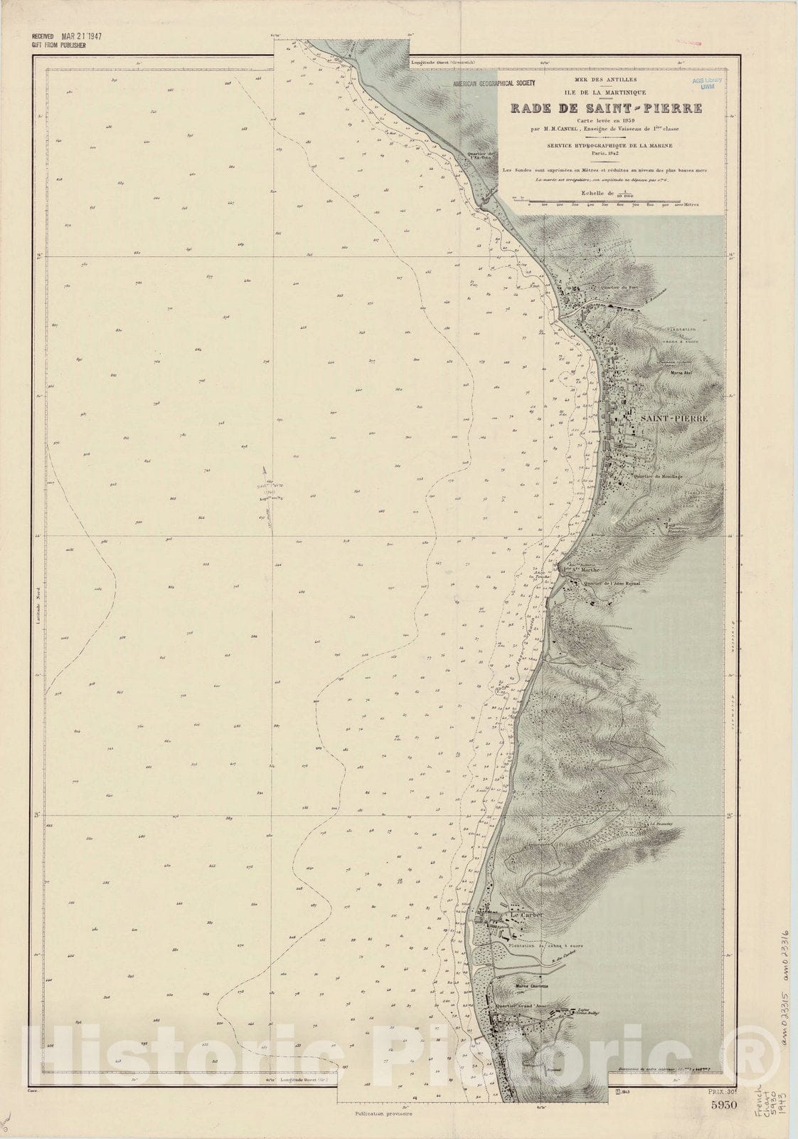 Mer des Antilles, I?le de la Martinique, Rade de Saint-Pierre / carte levee en 1939 ... Service hydrographique de la marine ... 1942