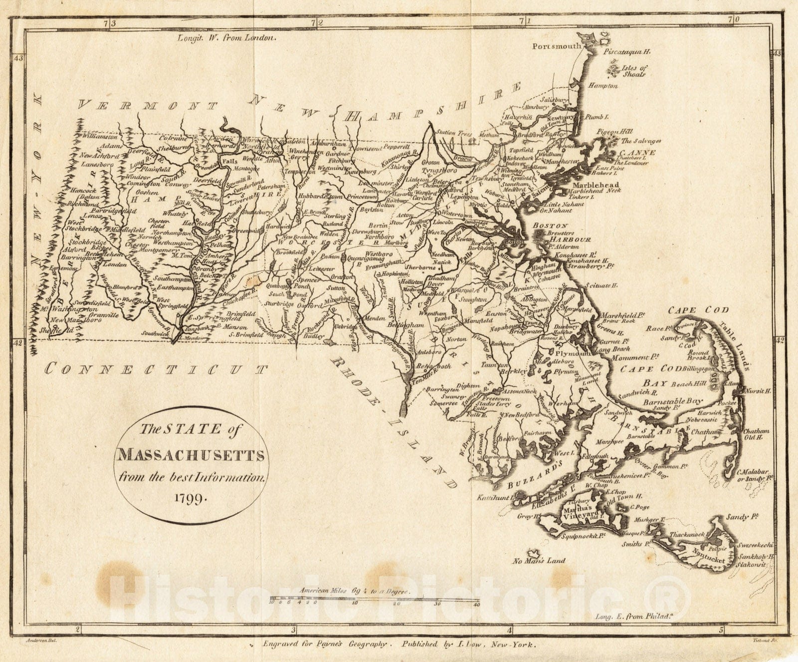 Historical Map, 1799 The state of Massachusetts from the best information, Vintage Wall Art