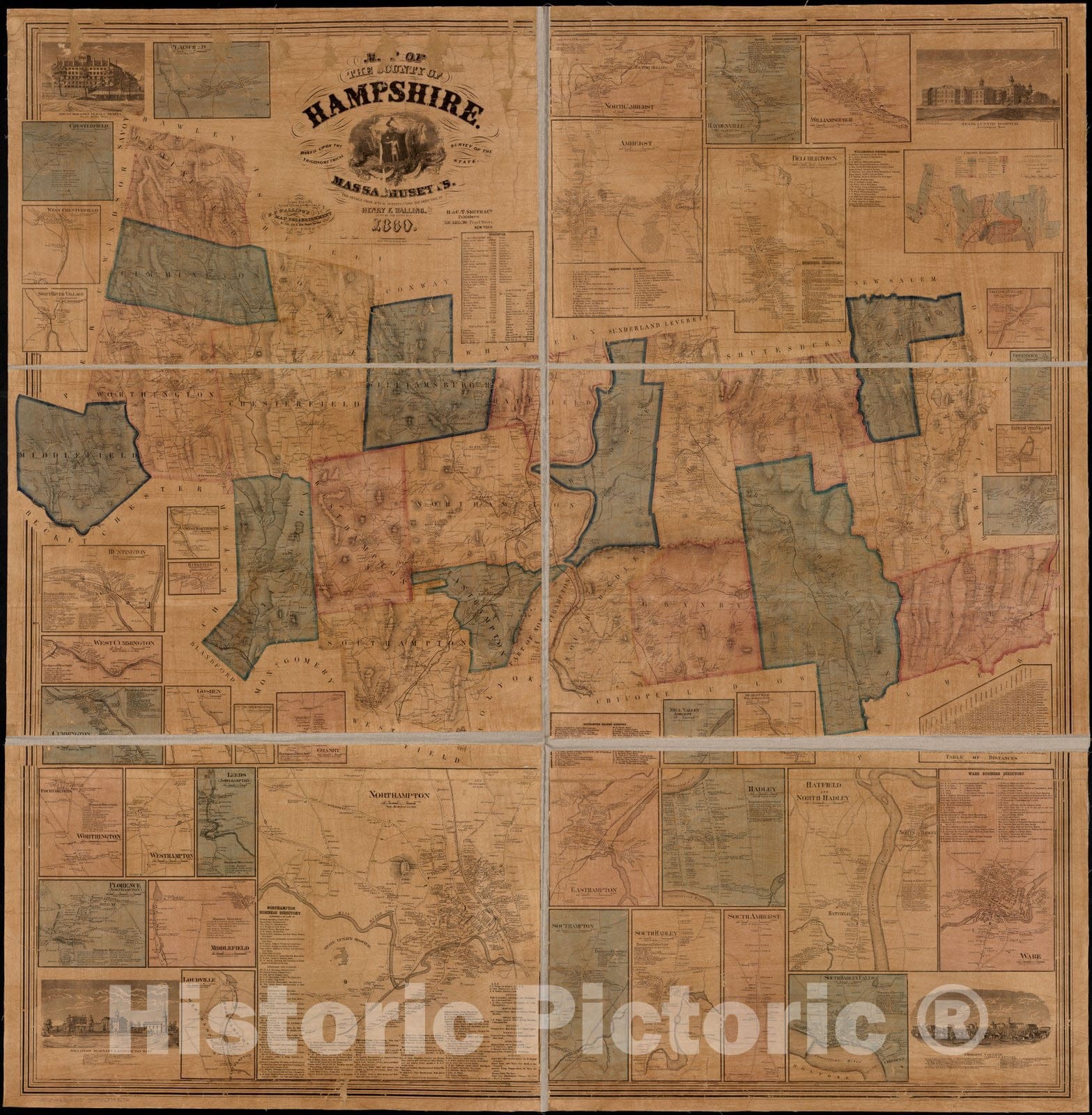 Historical Map, 1860 Map of The County of Hampshire, Massachusetts : Based Upon The Trigonometrical Survey of The State, Vintage Wall Art