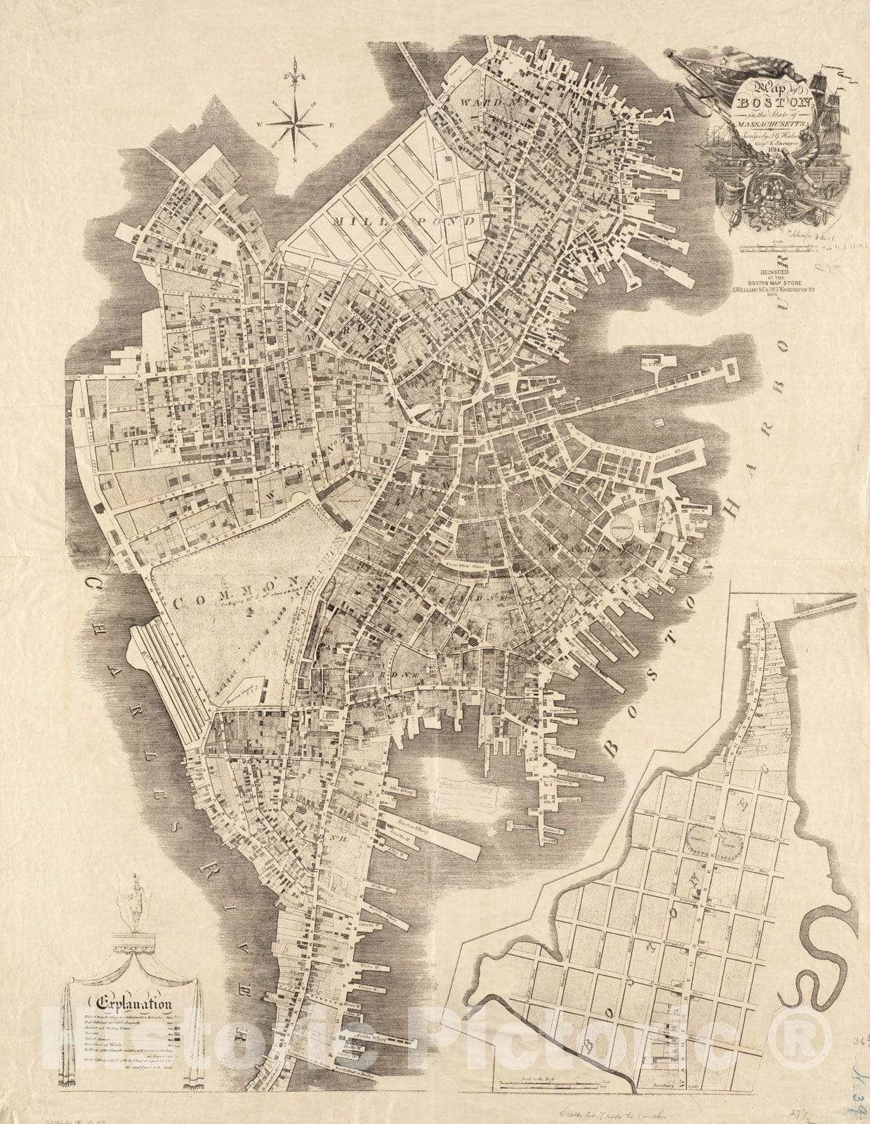 • .Historical Map, 1879 Map of Boston in The State of Massachusetts, Vintage Wall Art