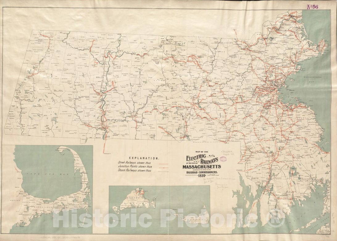 • Historic Map : Map of the Electric Railways of the State of Massachusetts accompanying the Report of the Railroad Commissioners. Copyright 1899 by Geo. H. Walker, c. 1901 , Vintage Wall Art