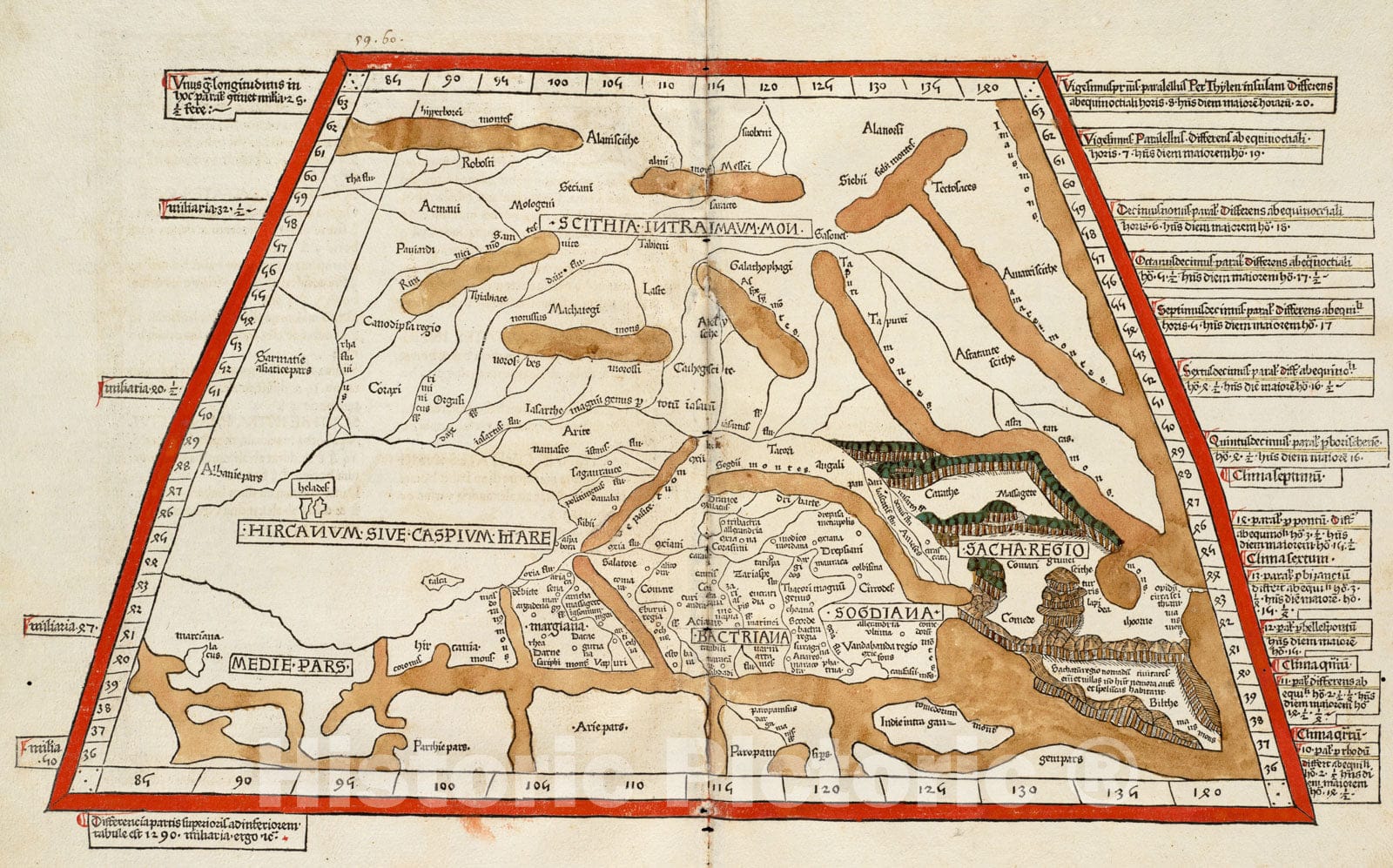 Historical Map, 1482 Septima Asia Tabula continet Margianam, Bactrianam, Sogdianos, Sacas & Scythiam Intra ImauI„ moI„teI„, Vintage Wall Art