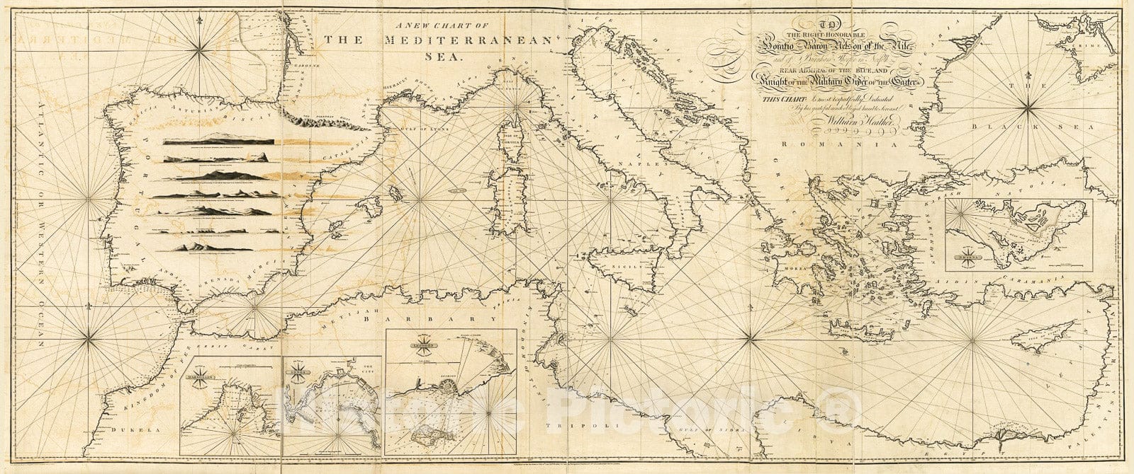 • .Historic 1797 Map - A New Chart of The Mediterranean Sea