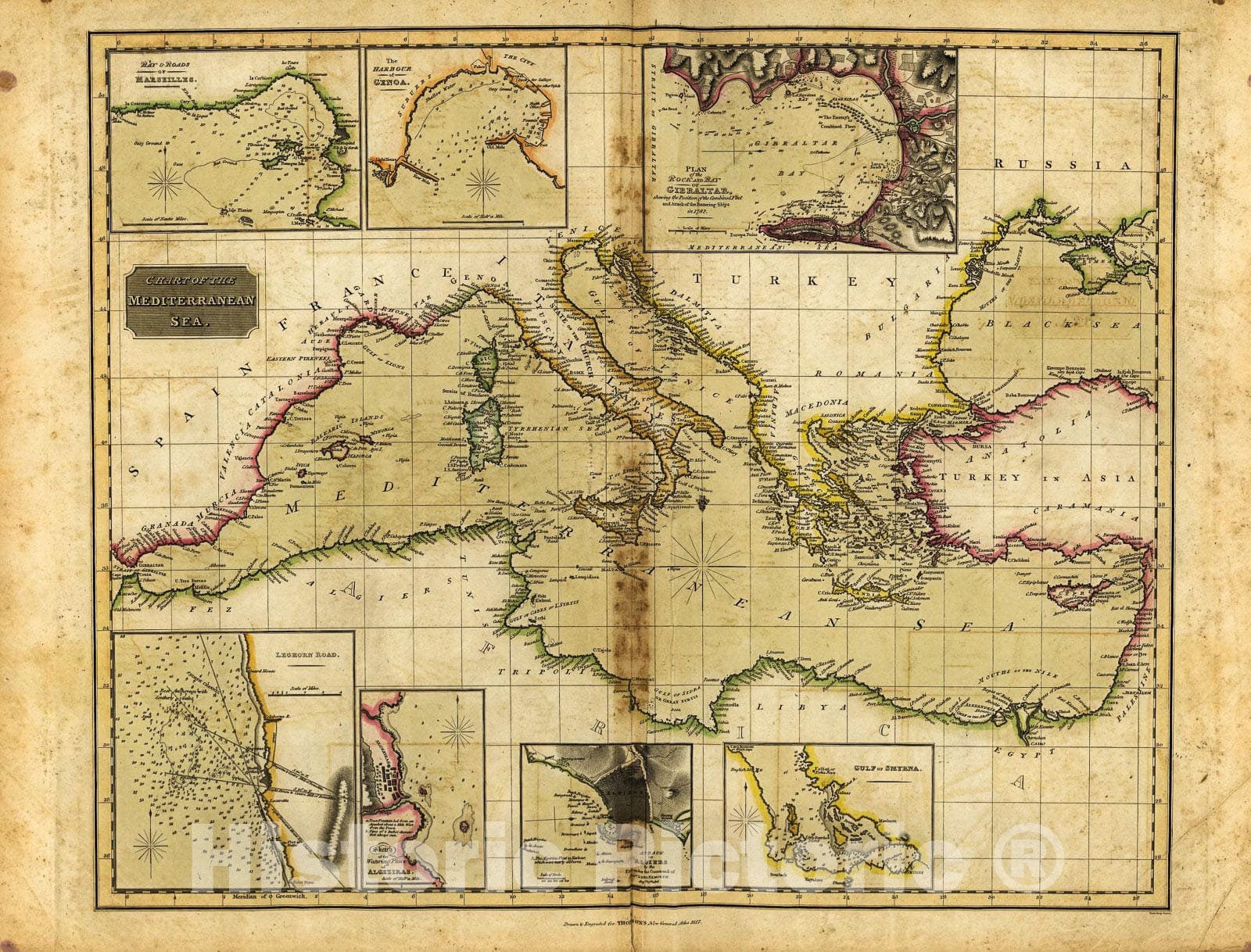 • Historic 1817 Map - Chart of The Mediterranean Sea