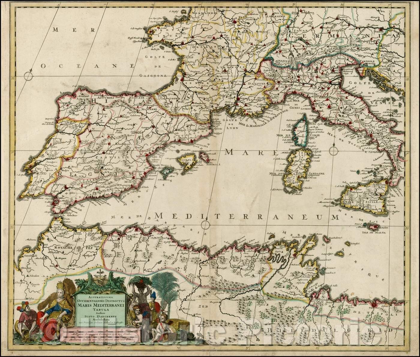 Historic Map - Accuratissima Occidentalioris Districtus Maris Mediterranei Tabula/Map of the Western Mediterranean, published by Justus Danckerts, 1690 - Vintage Wall Art