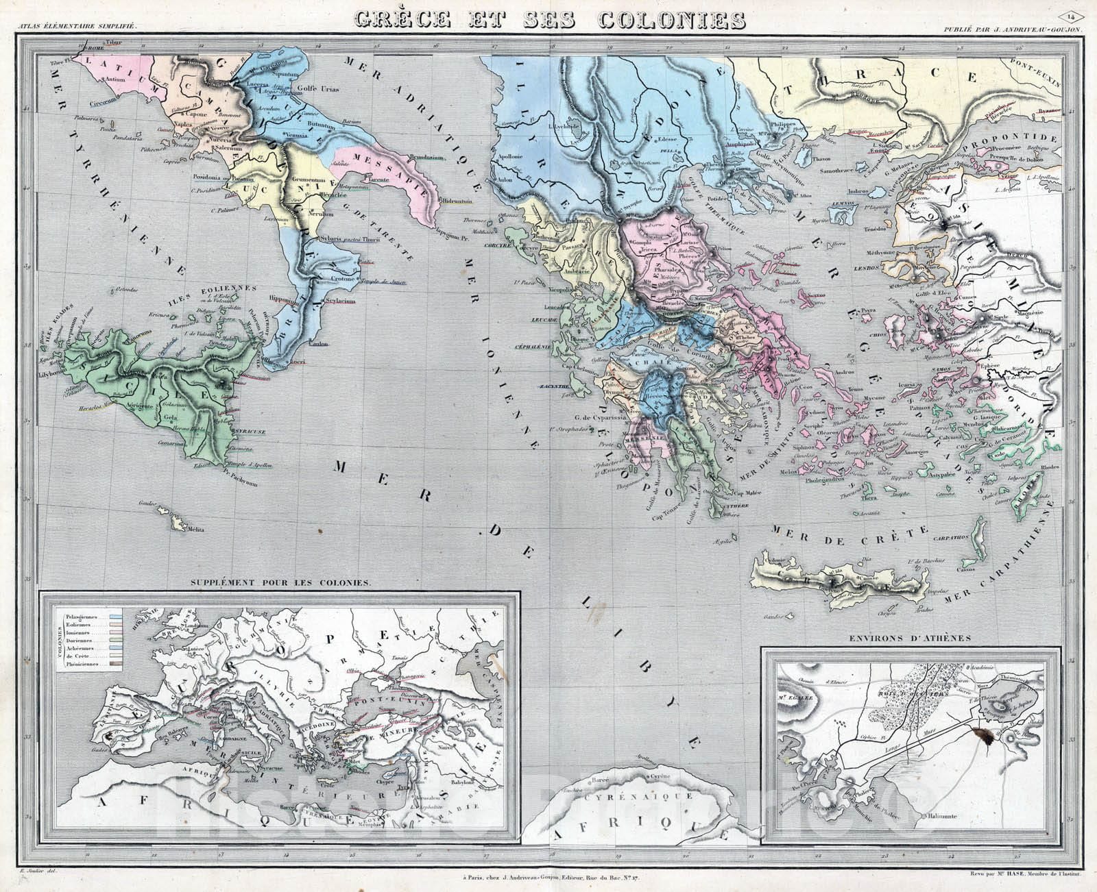 • .Historic Map : Athens (Greece), Mediterranean 1838 Grece et ses Colonies. , Vintage Wall Art