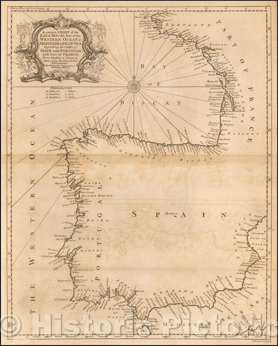 Historic Map - A correct Chart of the Bay of Biscay, Part of the Western Ocean & Mediterranean Sea: Describing the Coasts of Spain and Portugal, 1746 v1