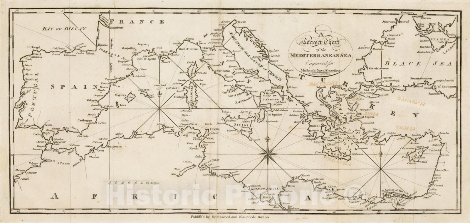 A Correct Chart of the Mediterranean Sea Engraved for Malham's Naval Gazetteer, 1797, Malham