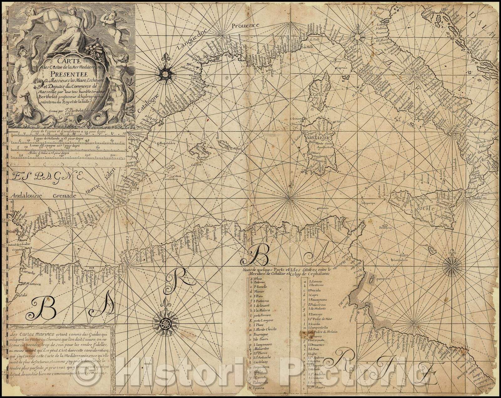 Historic Map - (Eastern Half of Mediterranean) (Carte des Costes de la Mer Mediterranee Presentee a Messieurs les Maire /, 1716, Francois Berthelot - Vintage Wall Art