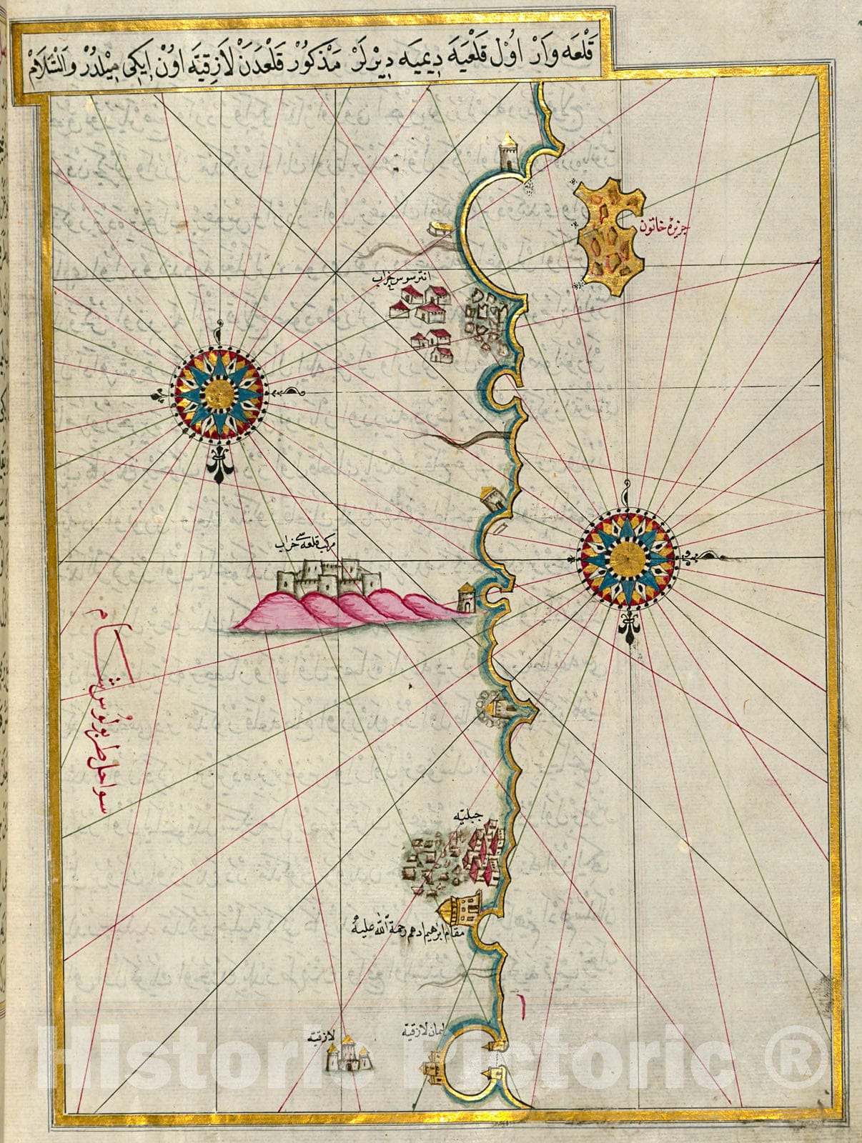 Historic Map : fol. 320b Eastern Mediterranean coastline from the island of Kh?t?n as far as Latakia (L?dhiq?yah), 1700, Vintage Wall Decor