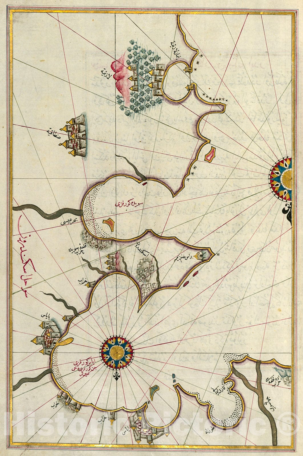 fol. 322a Eastern Mediterranean coastline (marked here as the coast of ?skenderun) and the cities of Latakia and Antakya, 1700, Vintage Wall Decor