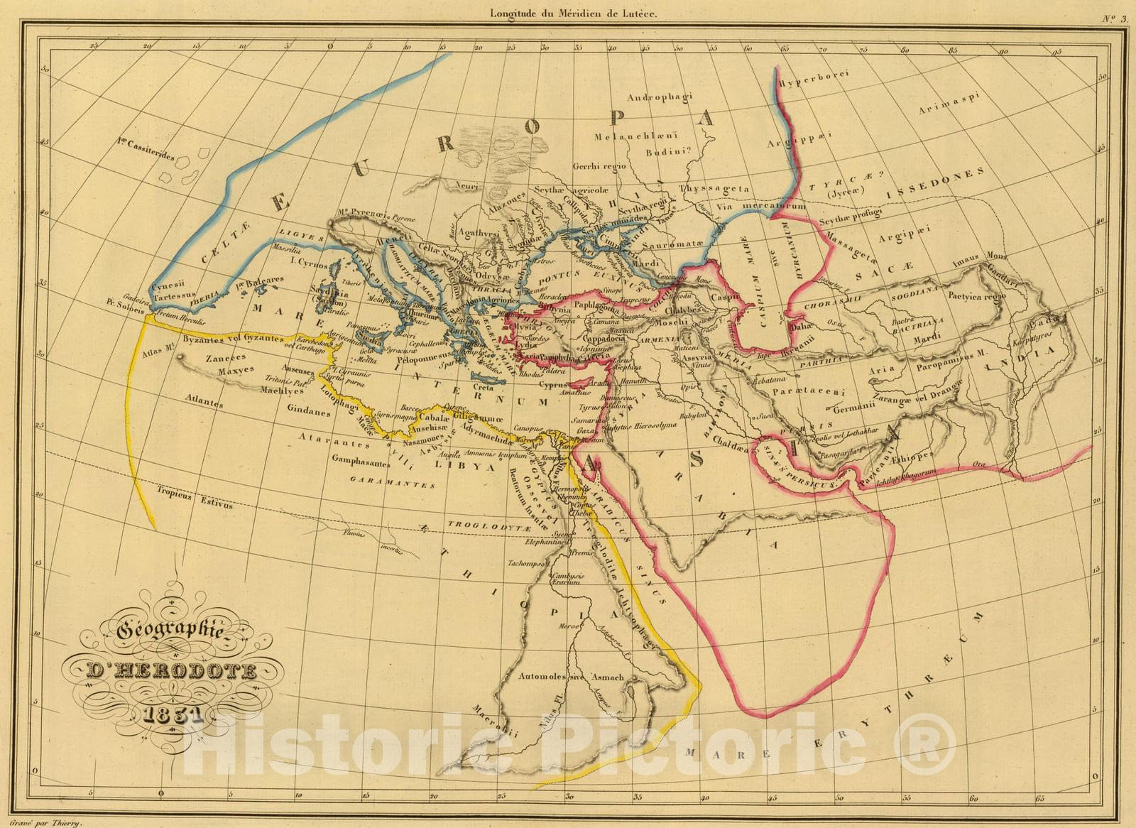 Historic Map : Greece; Turkey, Mediterranean 1837 Geographie d'Herodote. , Vintage Wall Art