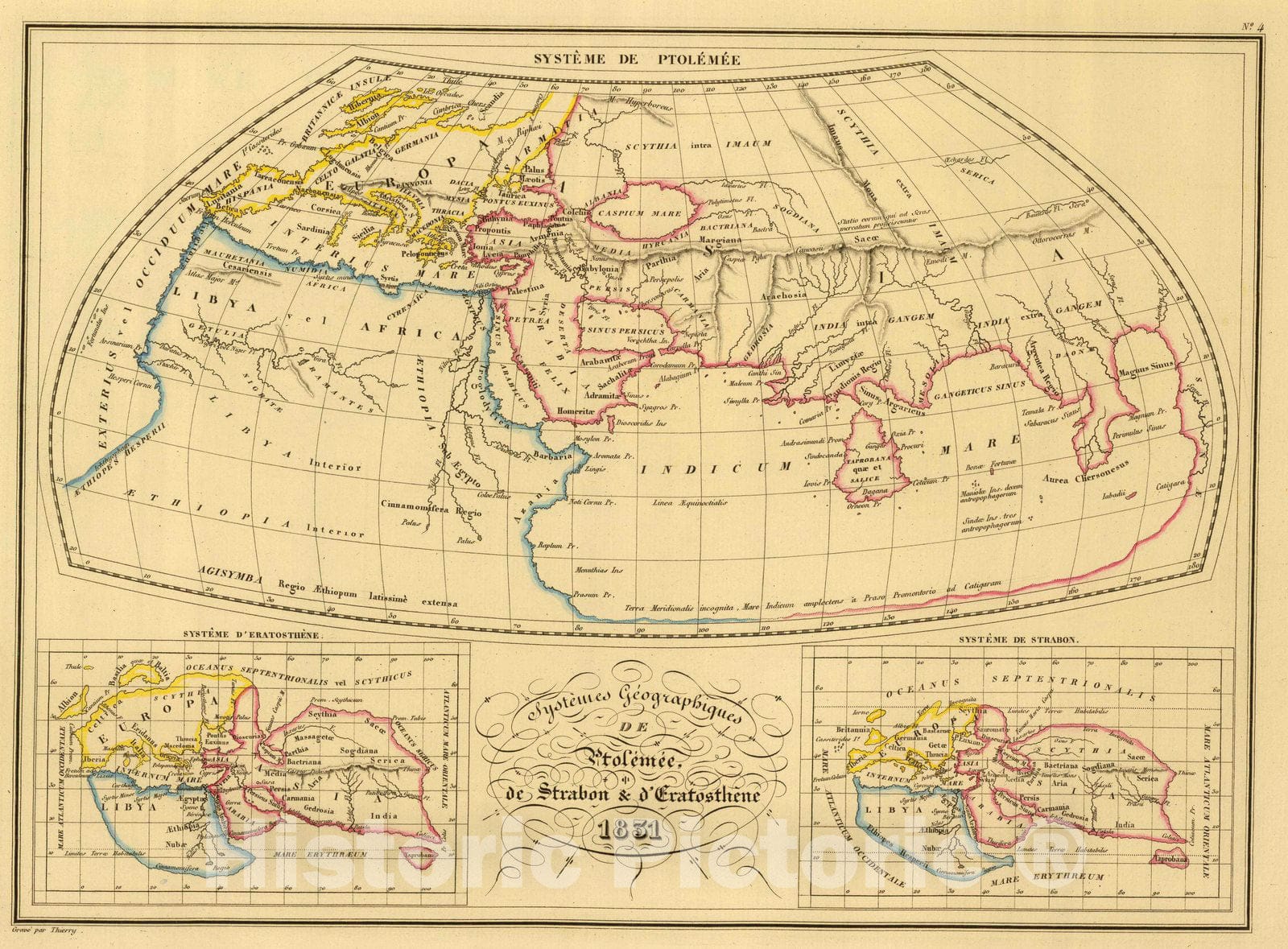 • .Historic Map : India; Turkey, Mediterranean 1837 Geographiques de Ptolemee, de Strabon & d'Eratosthene. , Vintage Wall Art