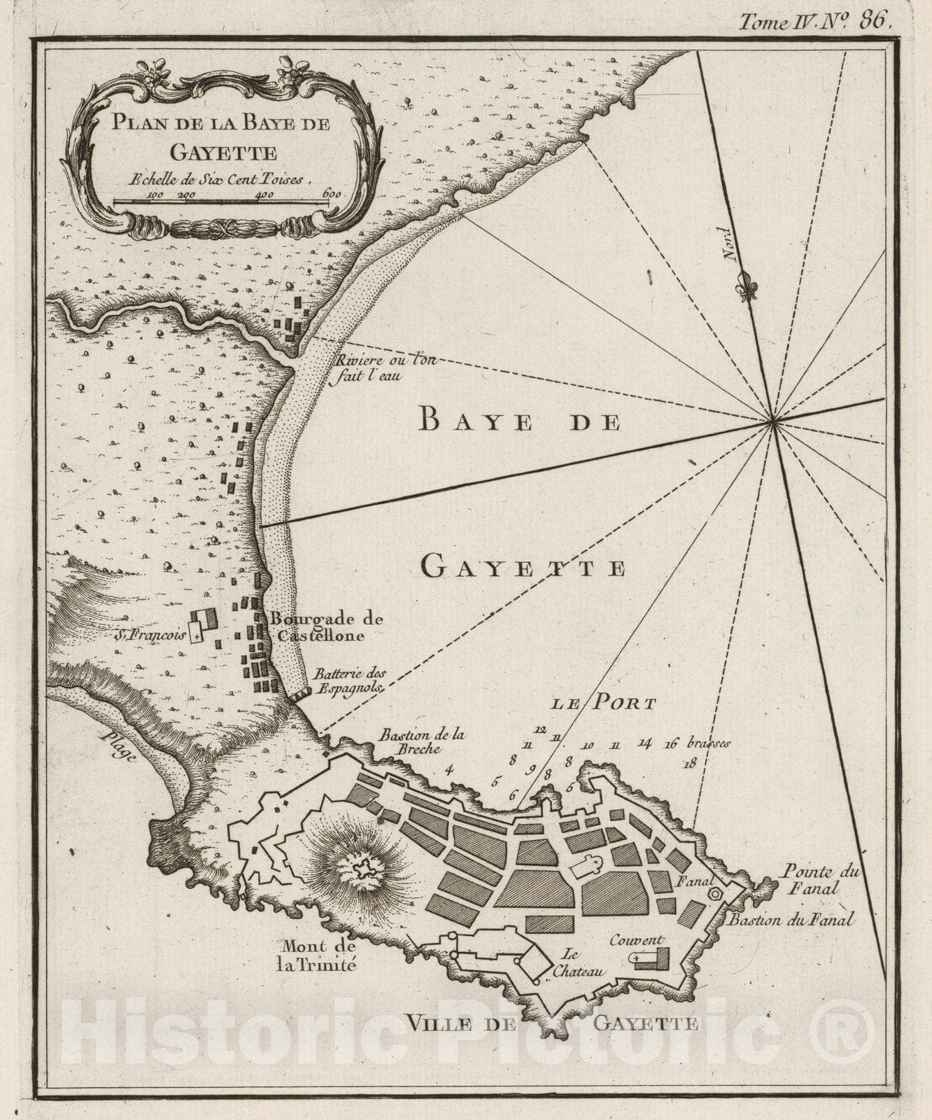 Historic Map : Italy, Mediterranean Region, Europe 1764 Plan de la ville et baye de Gayette , Vintage Wall Art