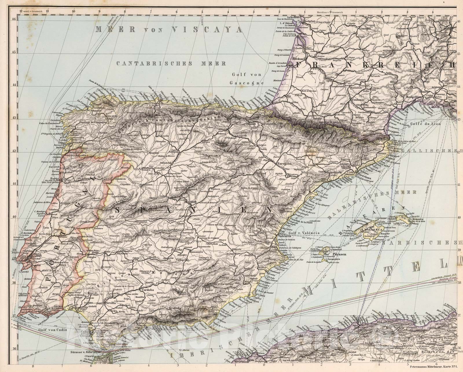 Karte No. 1. Karte des Mittellandischen Meeres in eight Blattern (Mediterranean No. 1)., 1eighteight0