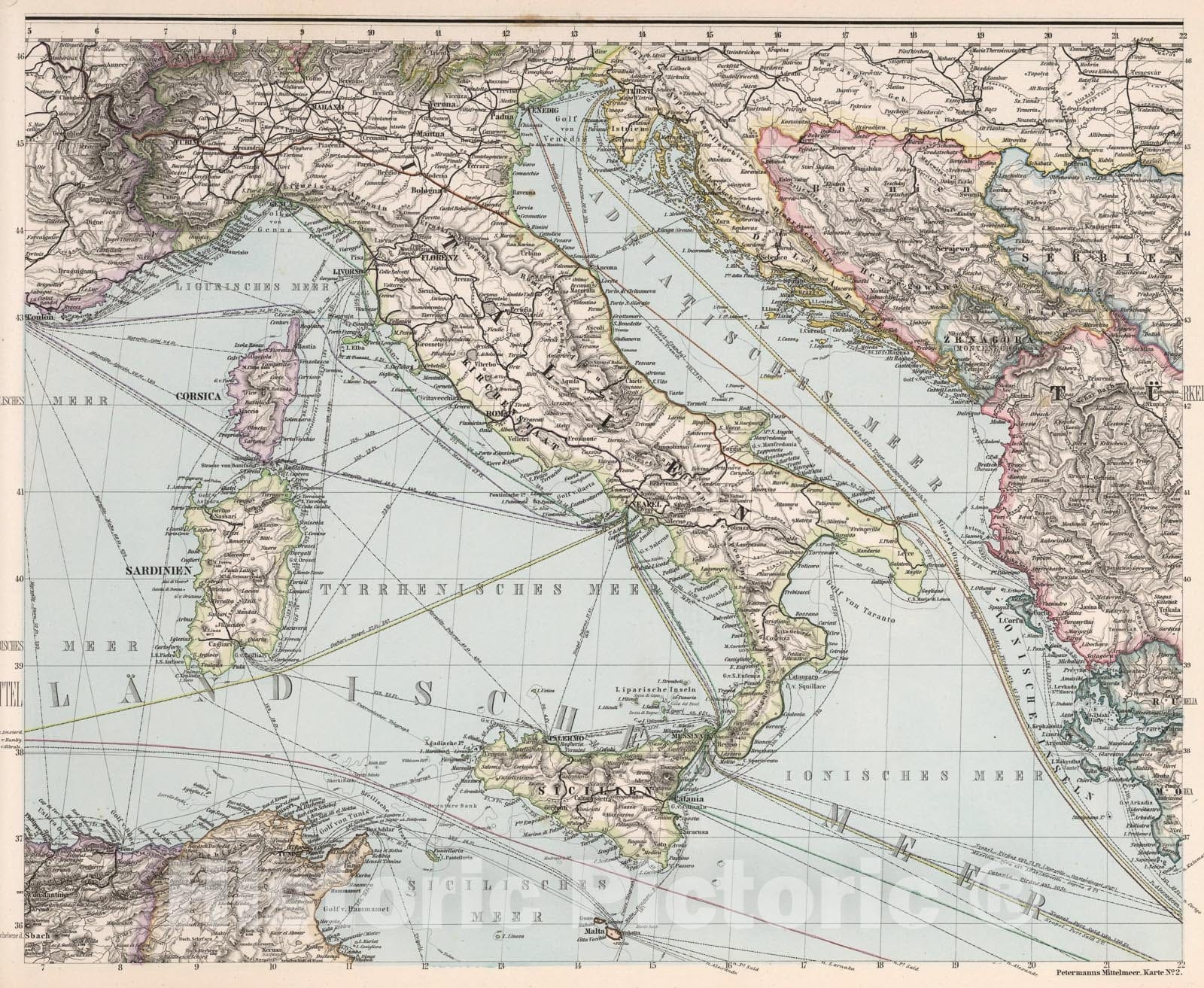 Historic Map : Karte No. 2. Karte des Mittellandischen Meeres in eight Blattern (Mediterranean No. 2)., 1eighteight0, Vintage Wall Art