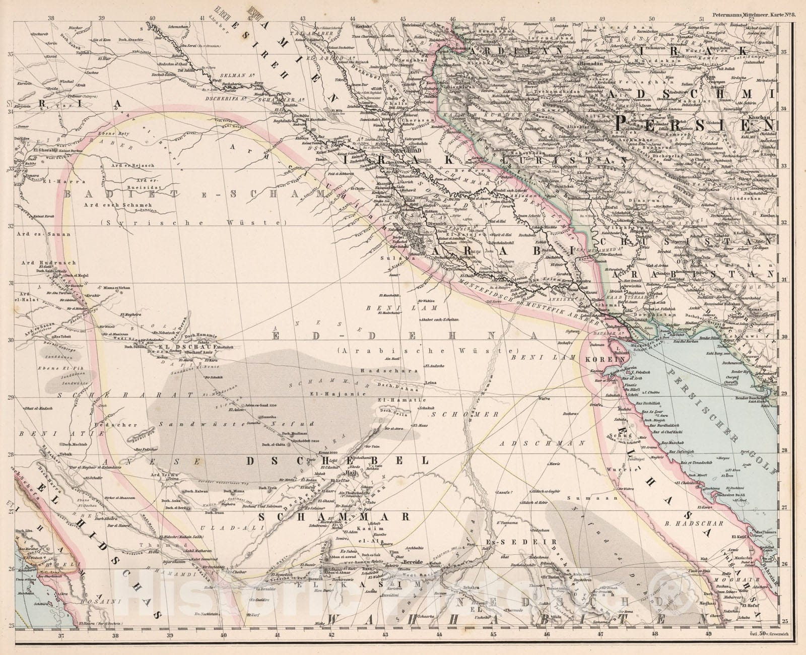 Historic Map : Karte No. eight. Karte des Mittellandischen Meeres in eight Blattern (Mediterranean No. eight)., 1eighteight0, Vintage Wall Art